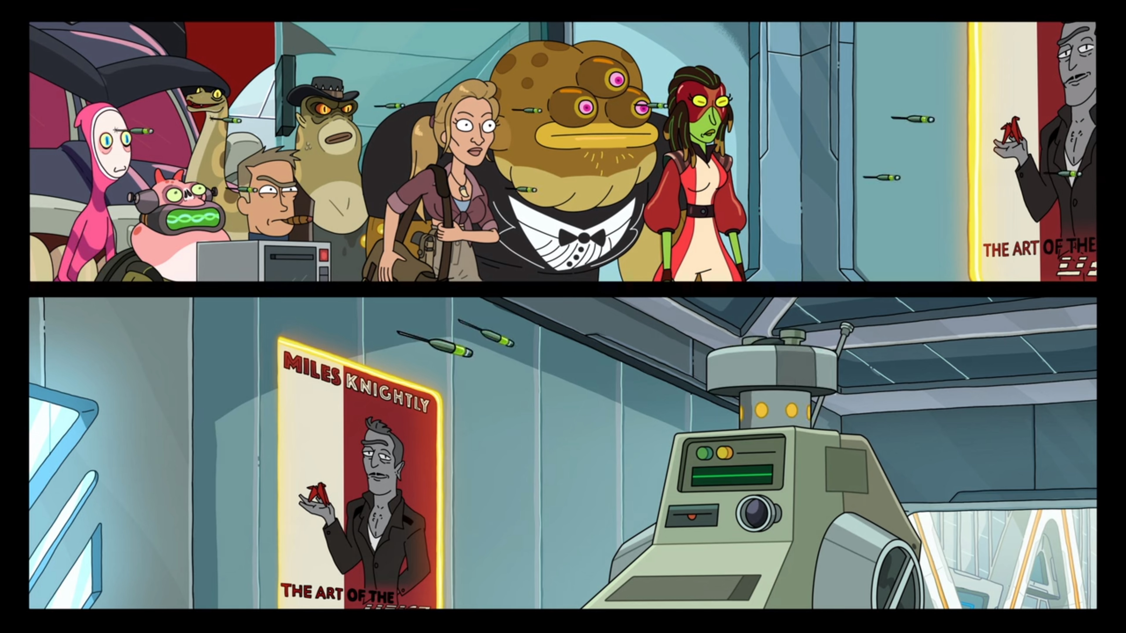 위에서 Rick의 대사에서 보면 Heistotron에게 Double-cross (배신)을 하라고 하는데 '예상치 못한 변화'를 하나 주라 고합니다. 즉, 예상치 못한 배신을 하나 넣어서 Miles의 계획을 저지하라는 뜻이지요.