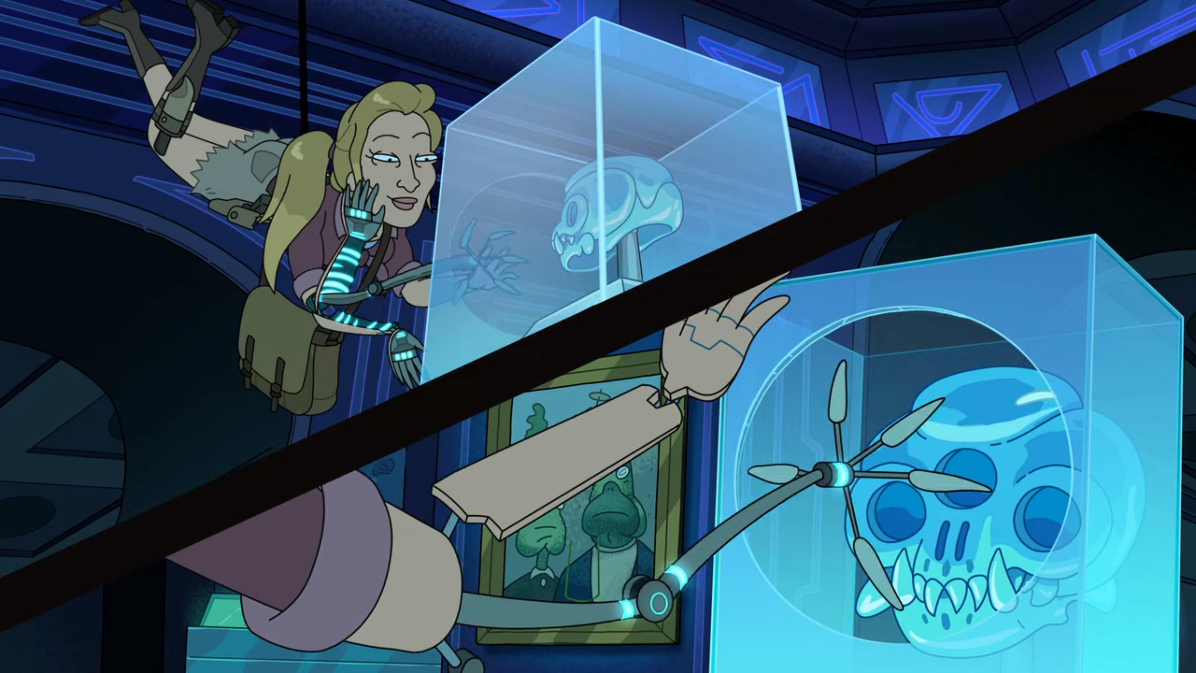 그리고는 Rick은 Morty에게 해골을 꺼내라고 합니다.