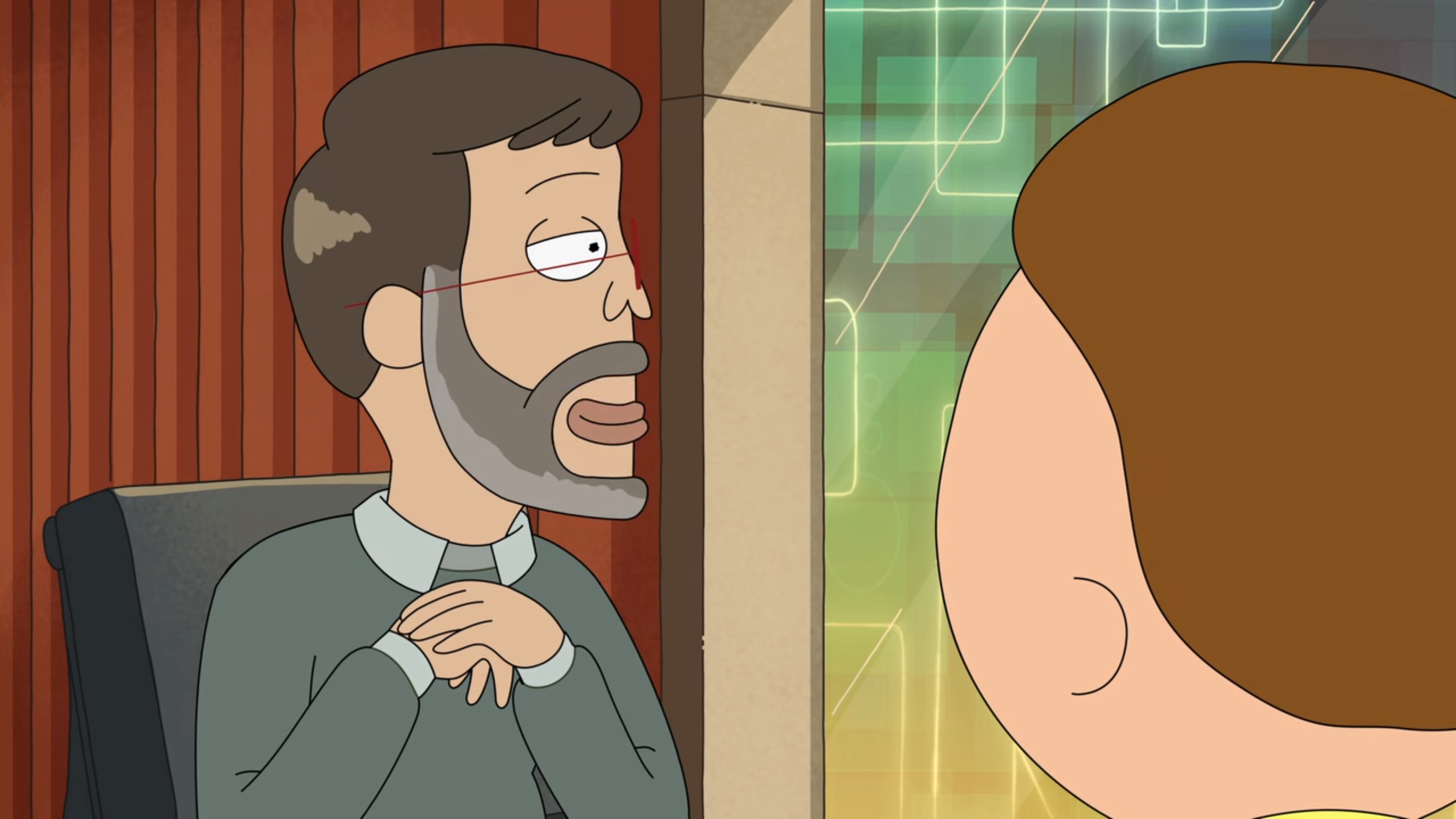 계속 이야기를 하면서 Morty는 자신감을 잃어갑니다.