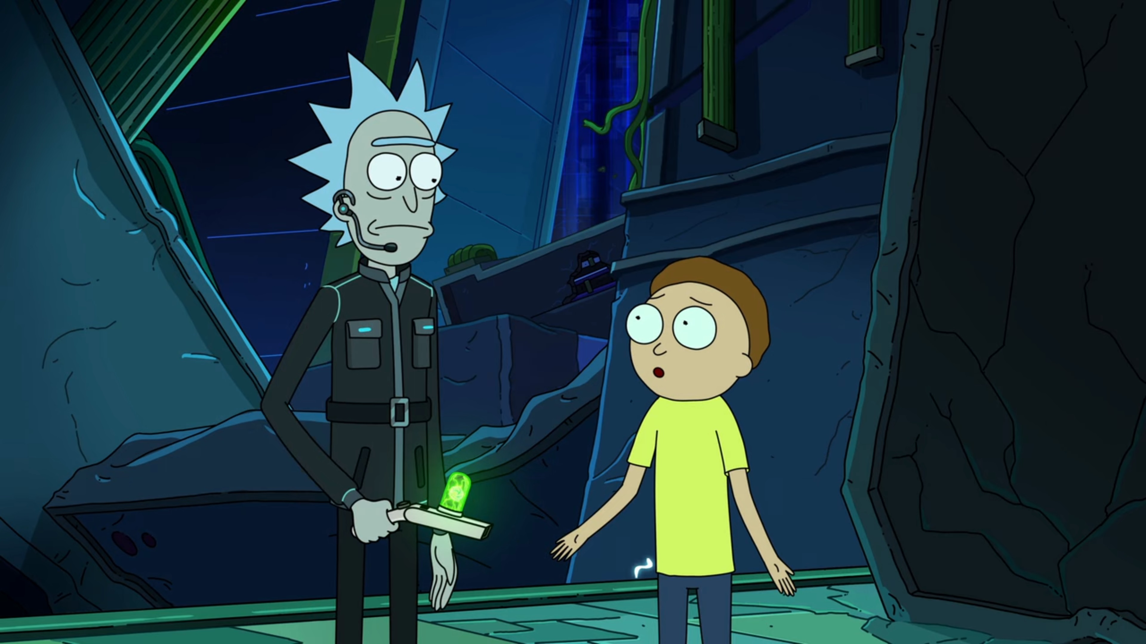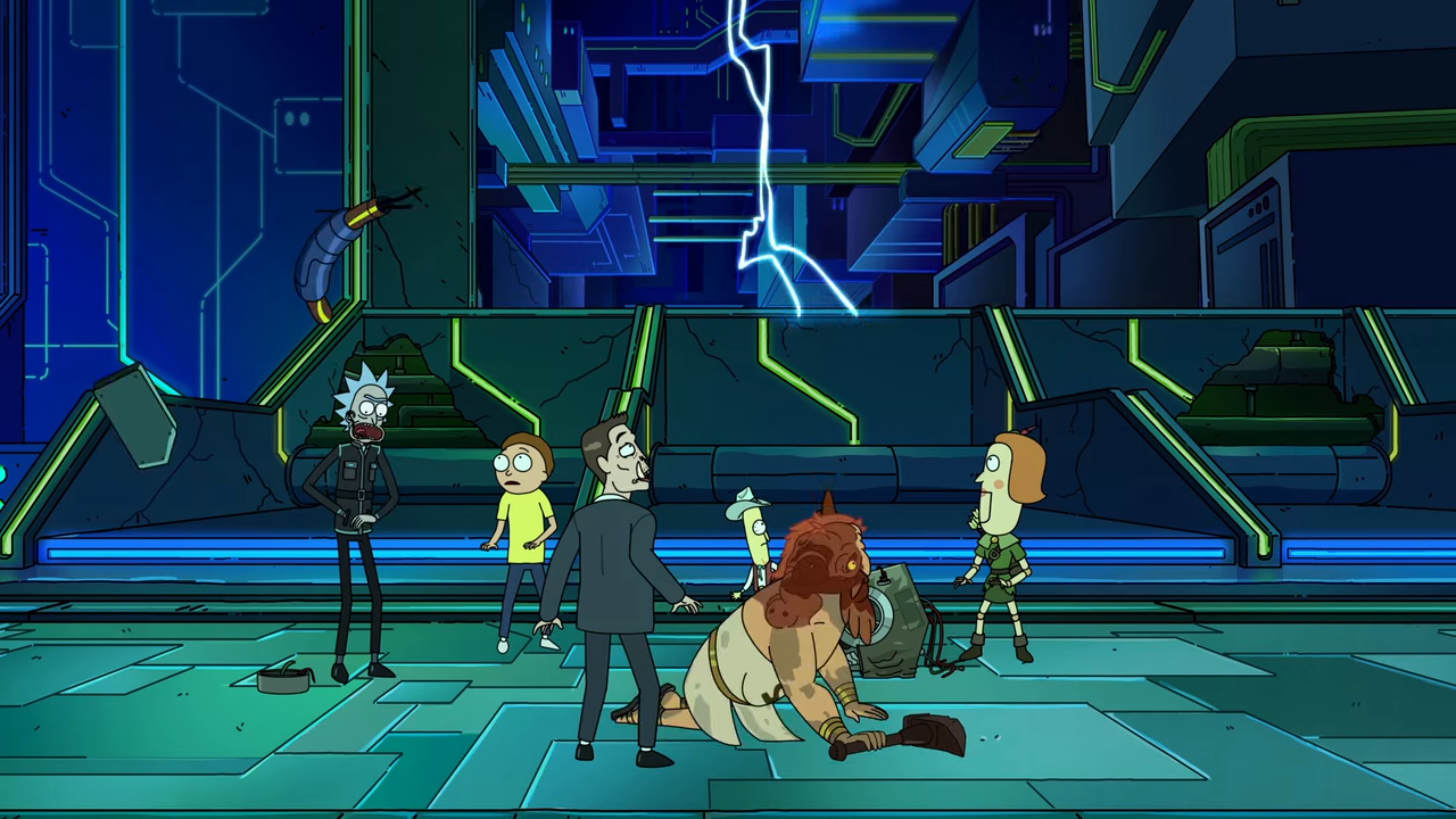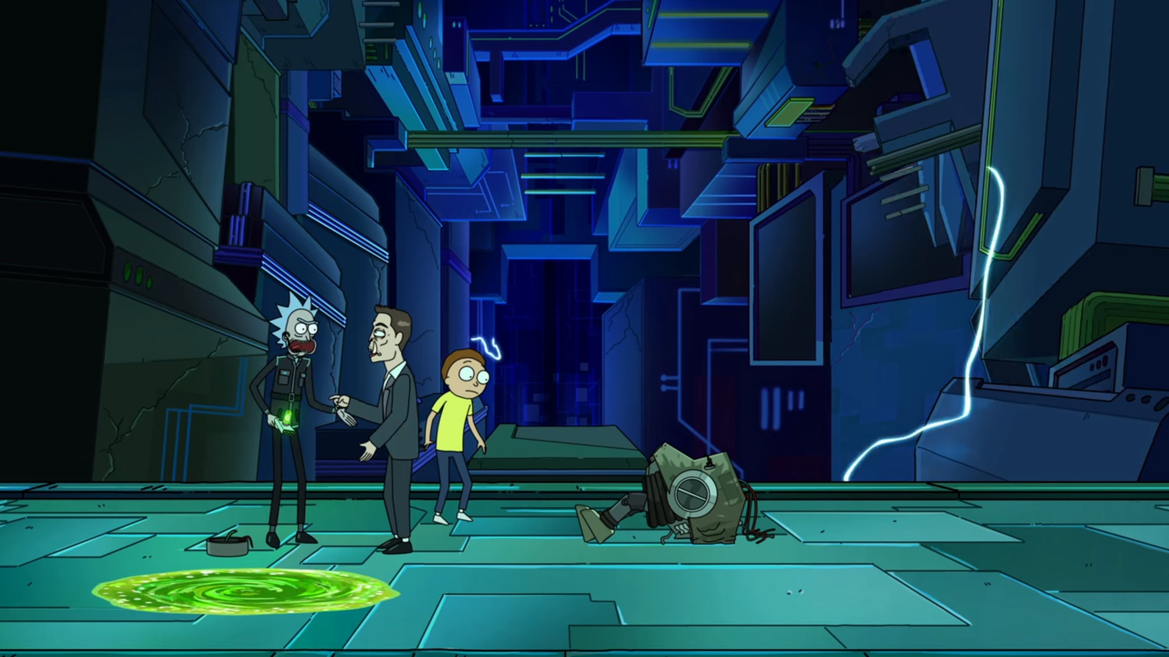 Heistotron에게 이긴 뒤 무너지는 Heistotron의 내부에서 Rick과 일행들은 나가려고 합니다.