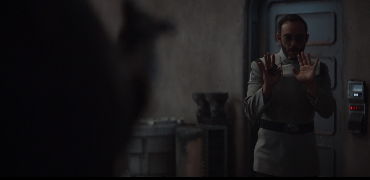 스토리에서 보면 박사가 갑자기 튀어나와서 The madalorian이 놀라 총을 꺼내게 되죠.