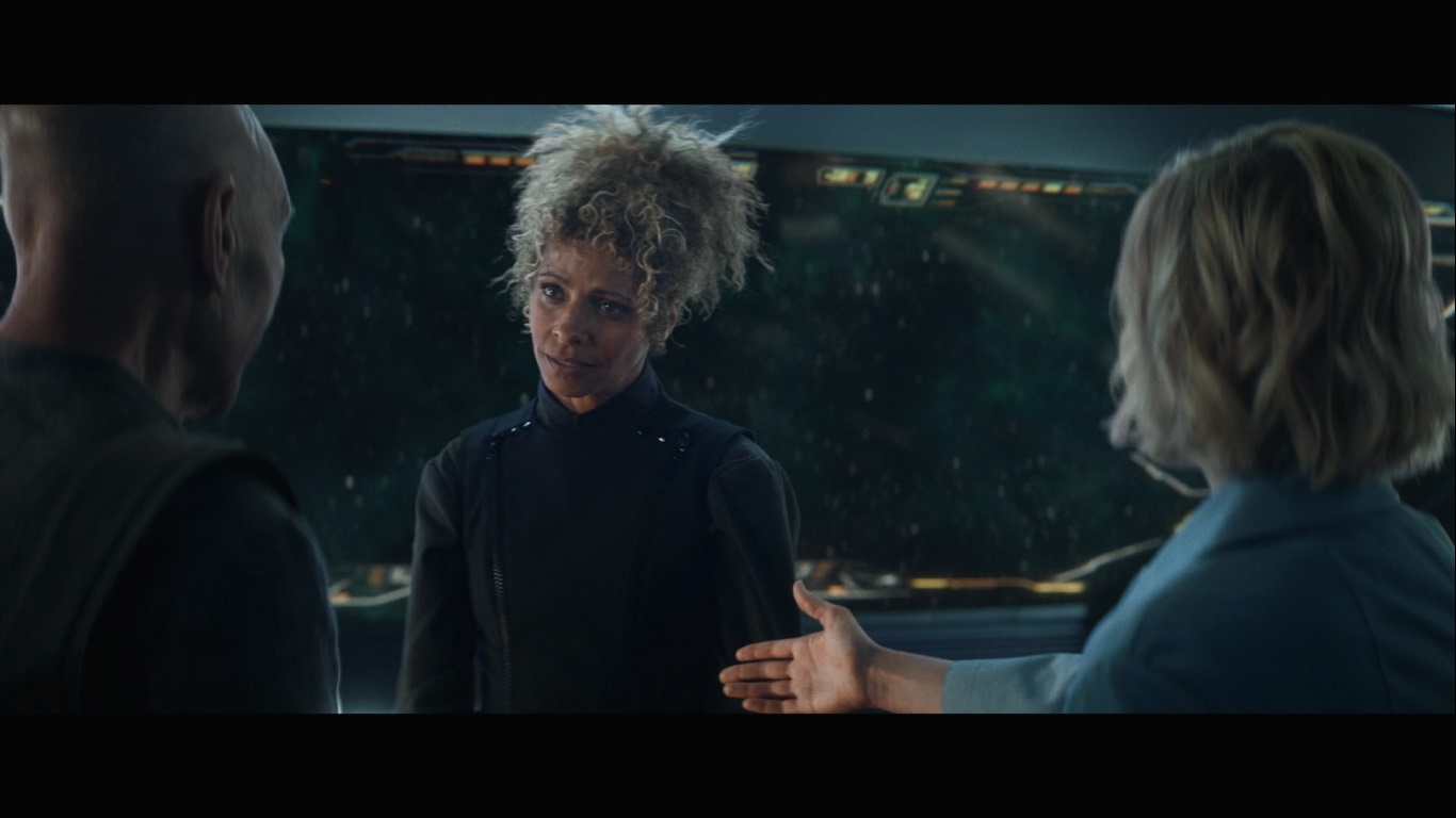 Rios는 출발해도 되냐고 Picard에게 물어봅니다.
