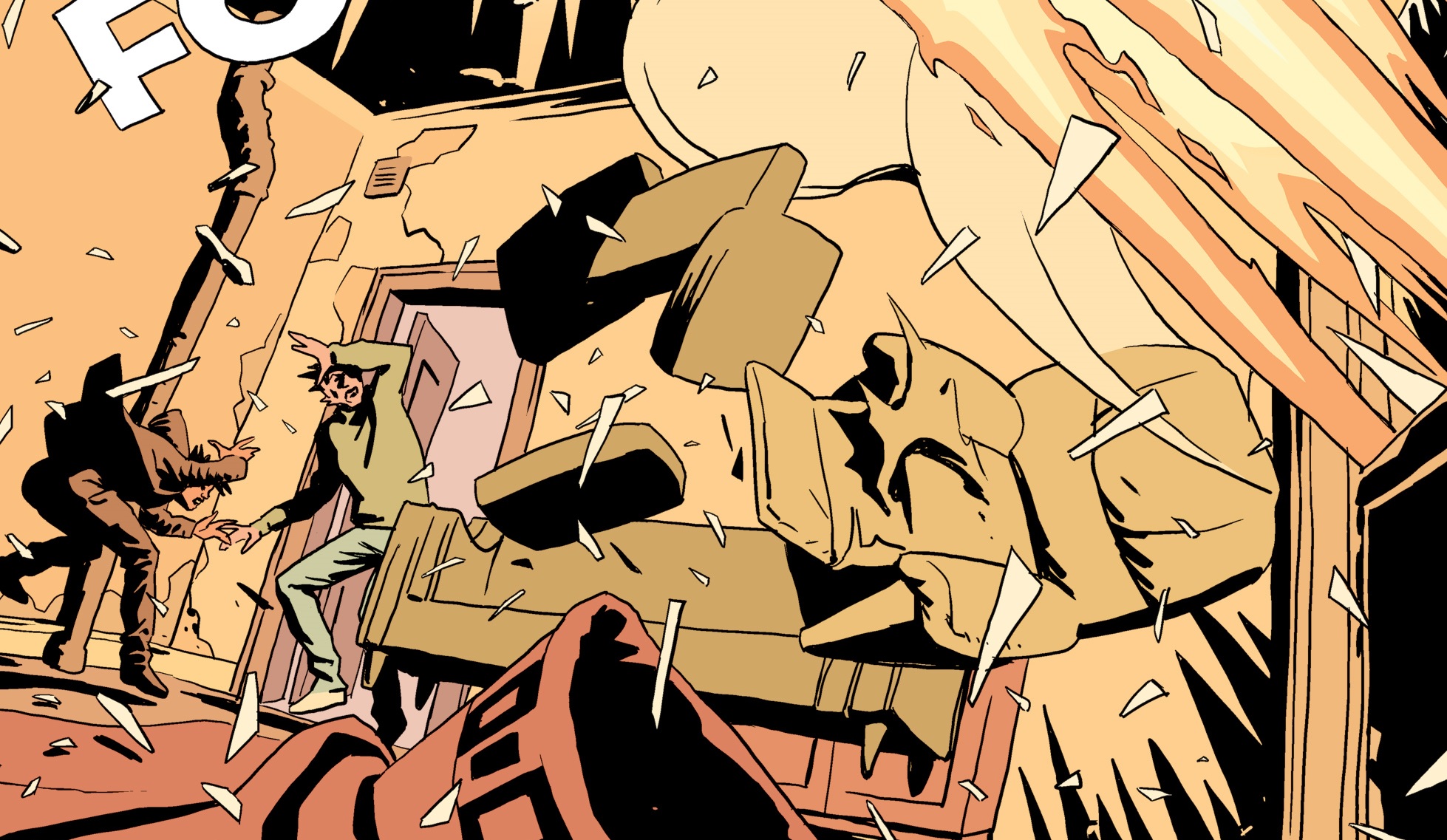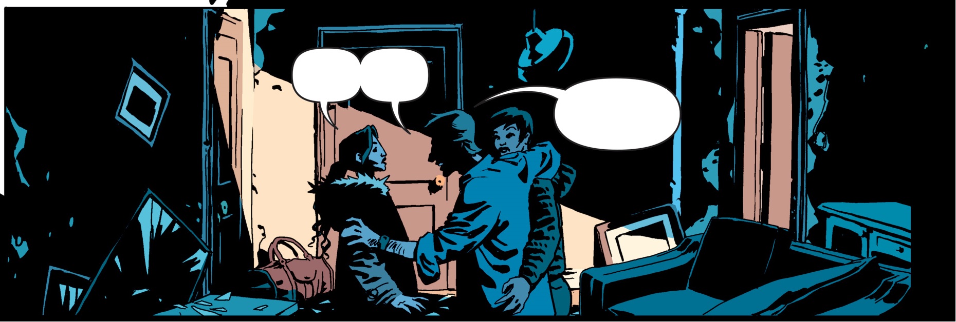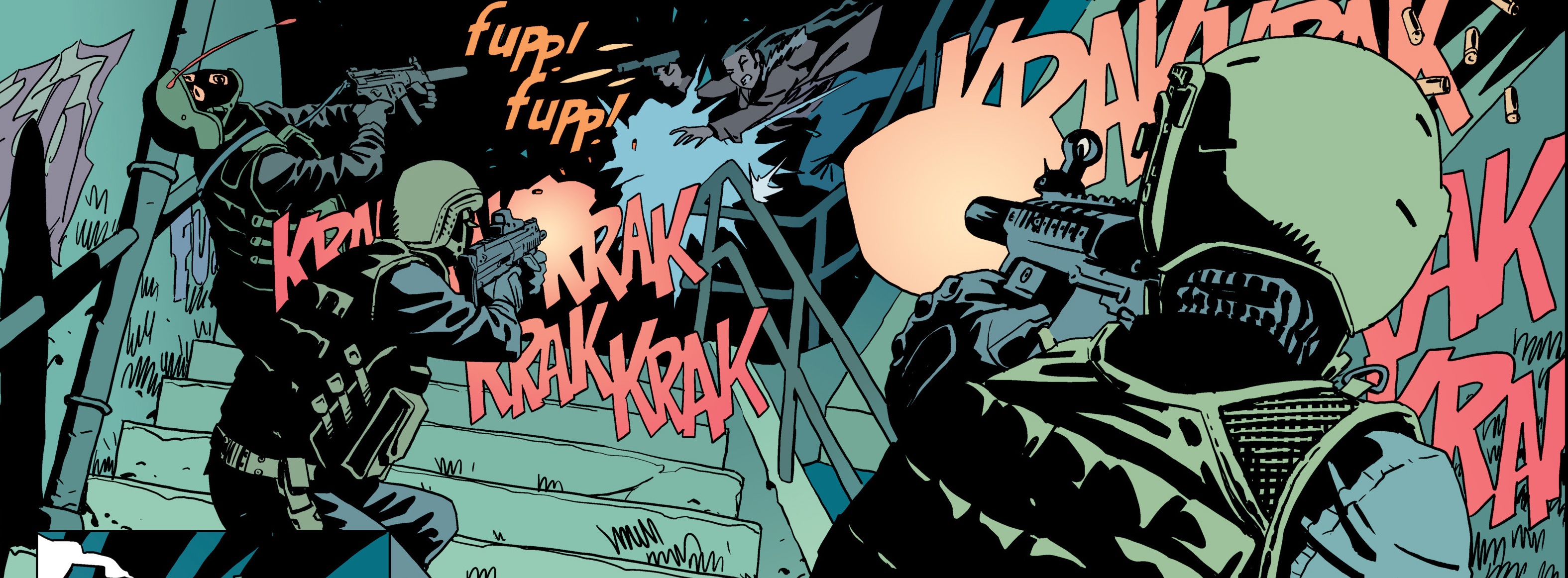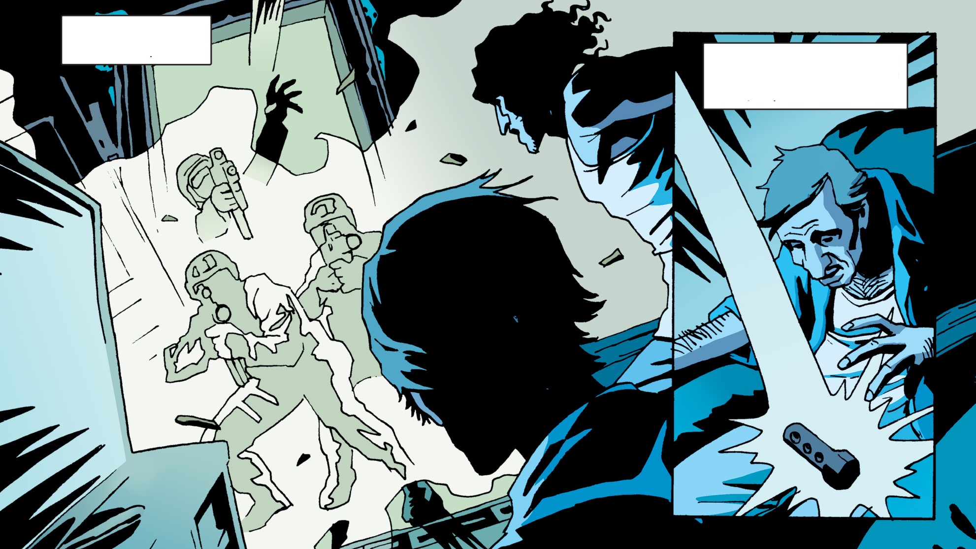 Nile과 Booker는 방에서 기다리고 있으면서 총소리를 듣습니다.