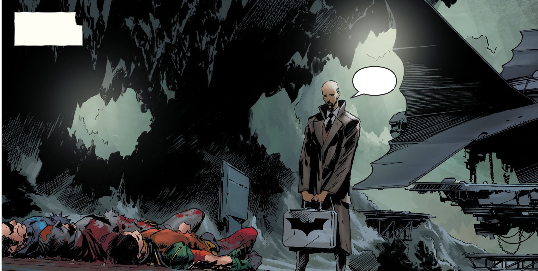 이번화의 시작은 Batman이 자신의 아들인 Damian에게 주라고 했던 가방을 Alfred가 들고 있는 것에서 시작합니다.