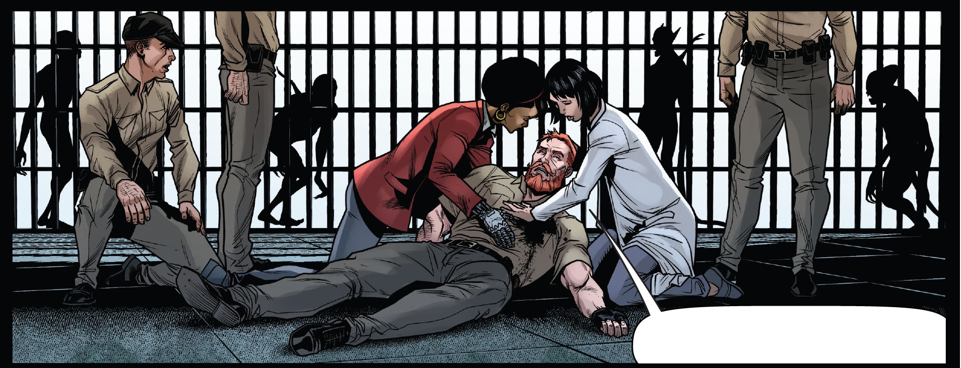그렇게 간수와 실랑이를 하던 Miss Knight의 뒤로 누군가 간수에게 Jameson을 고문하는 것은 전혀 의미가 없다고 이야기합니다.