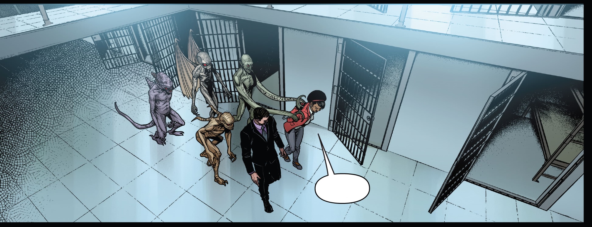 그러자 간수들은 Miss Knight와 Norman을 꺼내서 데리고 갑니다.