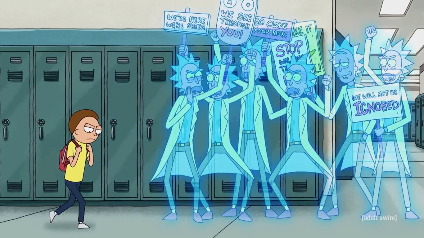 Morty가 Rick을 되살려 주지 않자 Rick은 다른 차원에 있는 자신에게 가서 클론을 사용해 계속해서 살아나려고 합니다.
