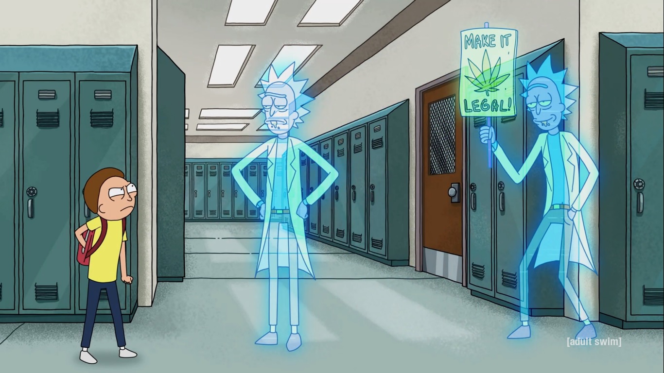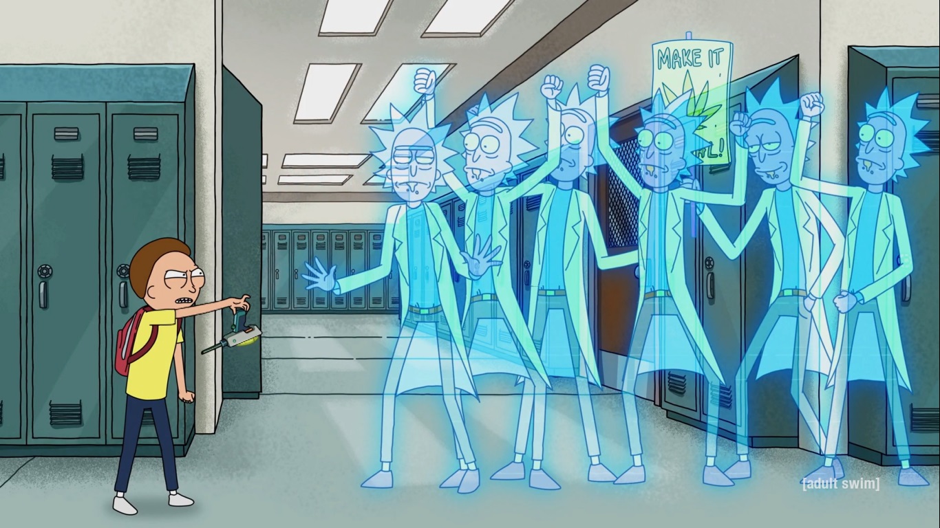일상으로 돌아온 Morty는 학교에 등교합니다. 하지만 홀로그램 Rick이 그냥 놔둘 리가 없죠.