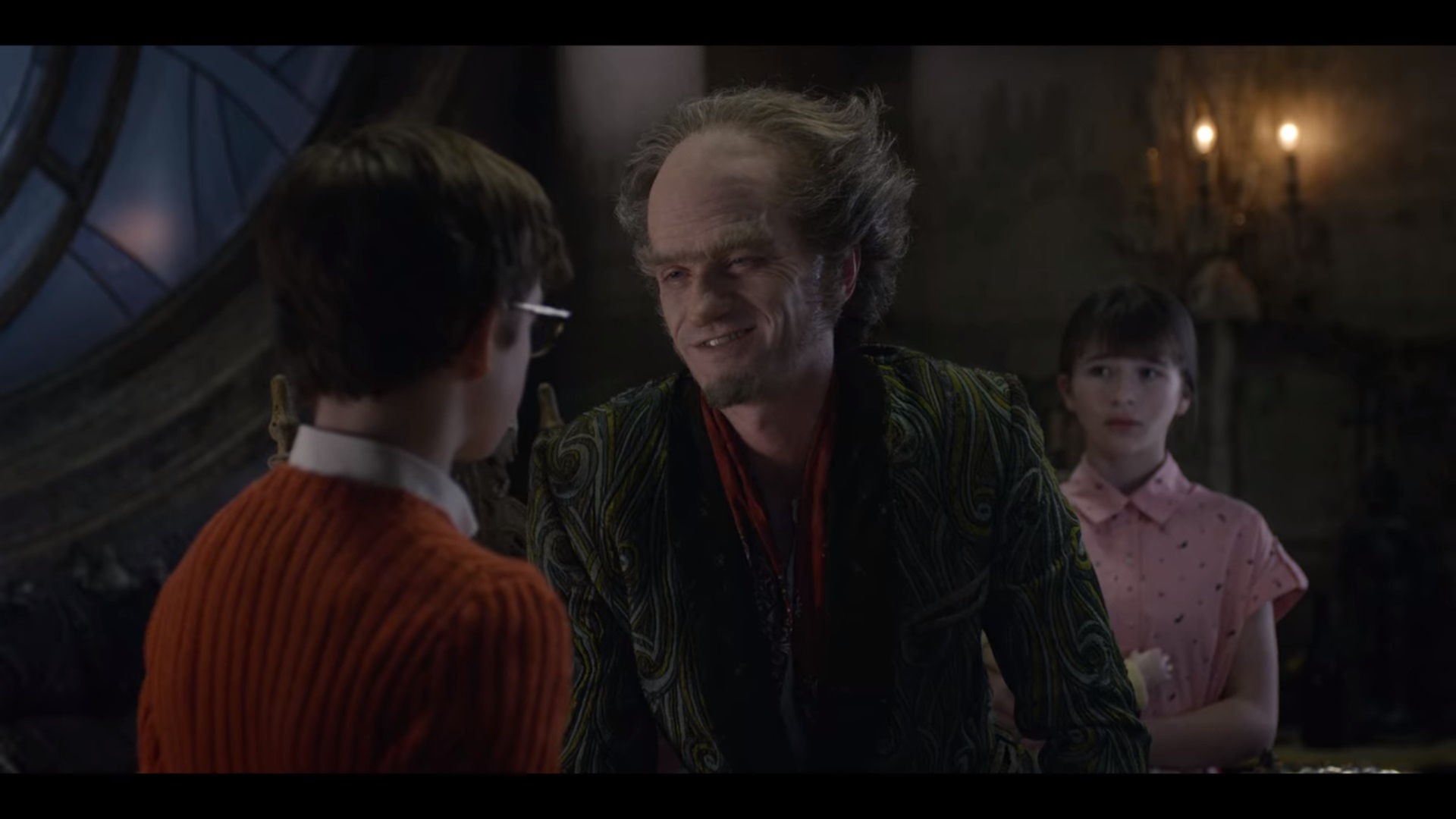 이제 Baudelaire 아이들은 Mr. Poe를 따라서 새로운 보호자인 Count Olaf에게 갑니다.