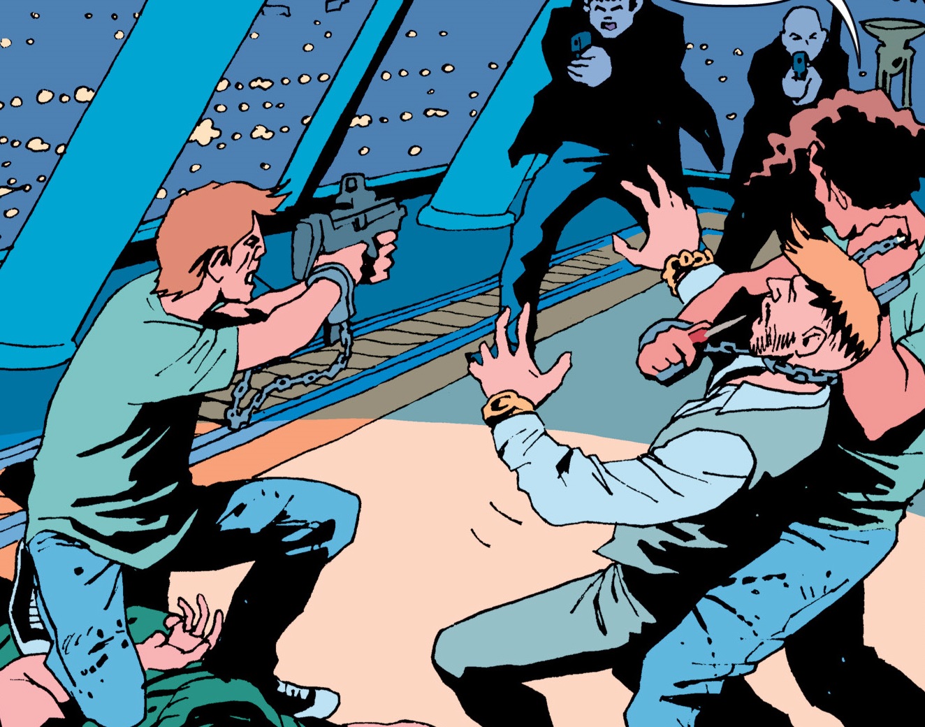 Merrick의 부하들이 그대로 총을 쏴서 Nicky와 Joe를 넘어 뜨립니다.