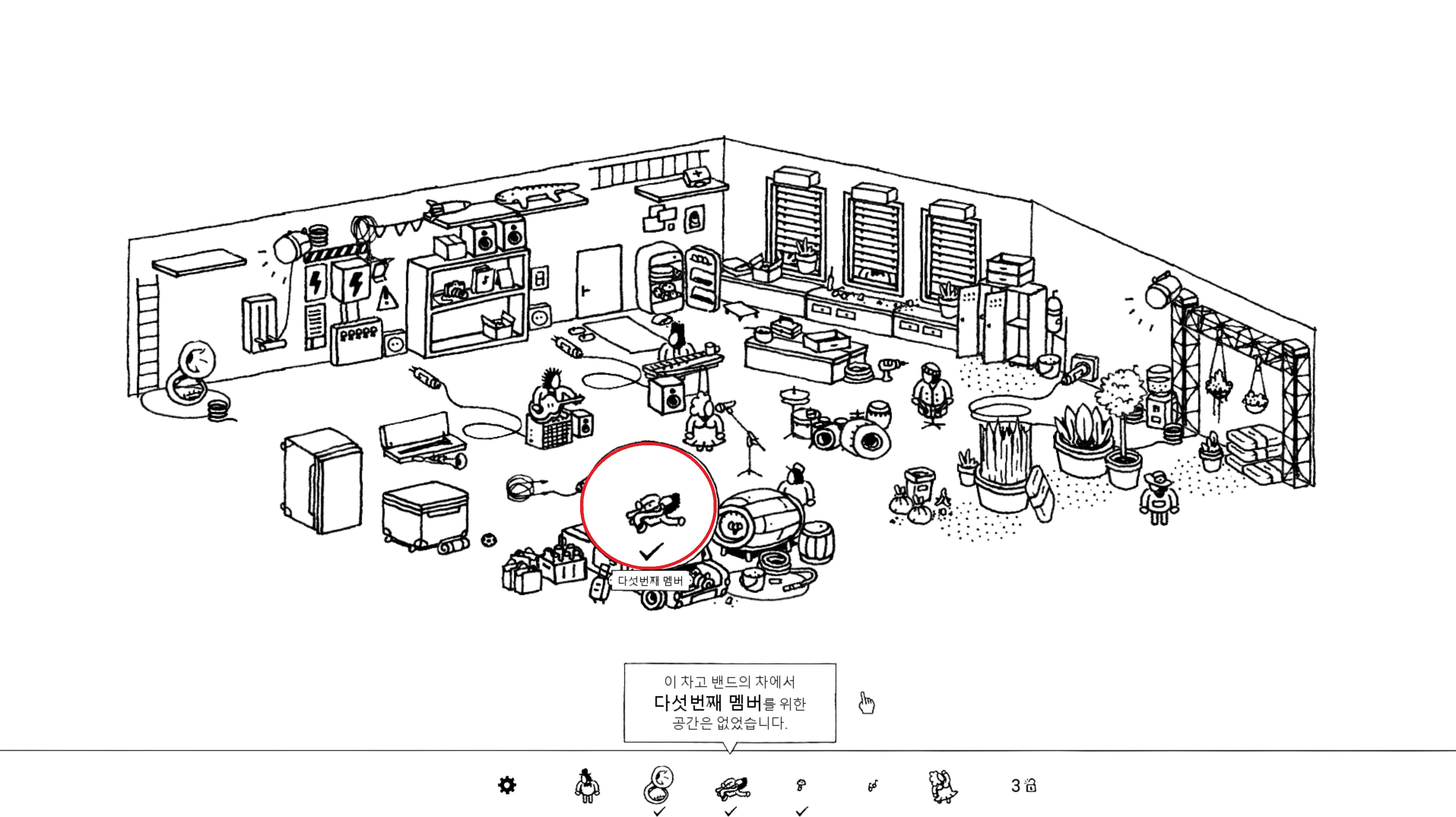 파란색 동그라미의 드러머를 눌러 드럼 앞으로 오도록 하게 합니다.
