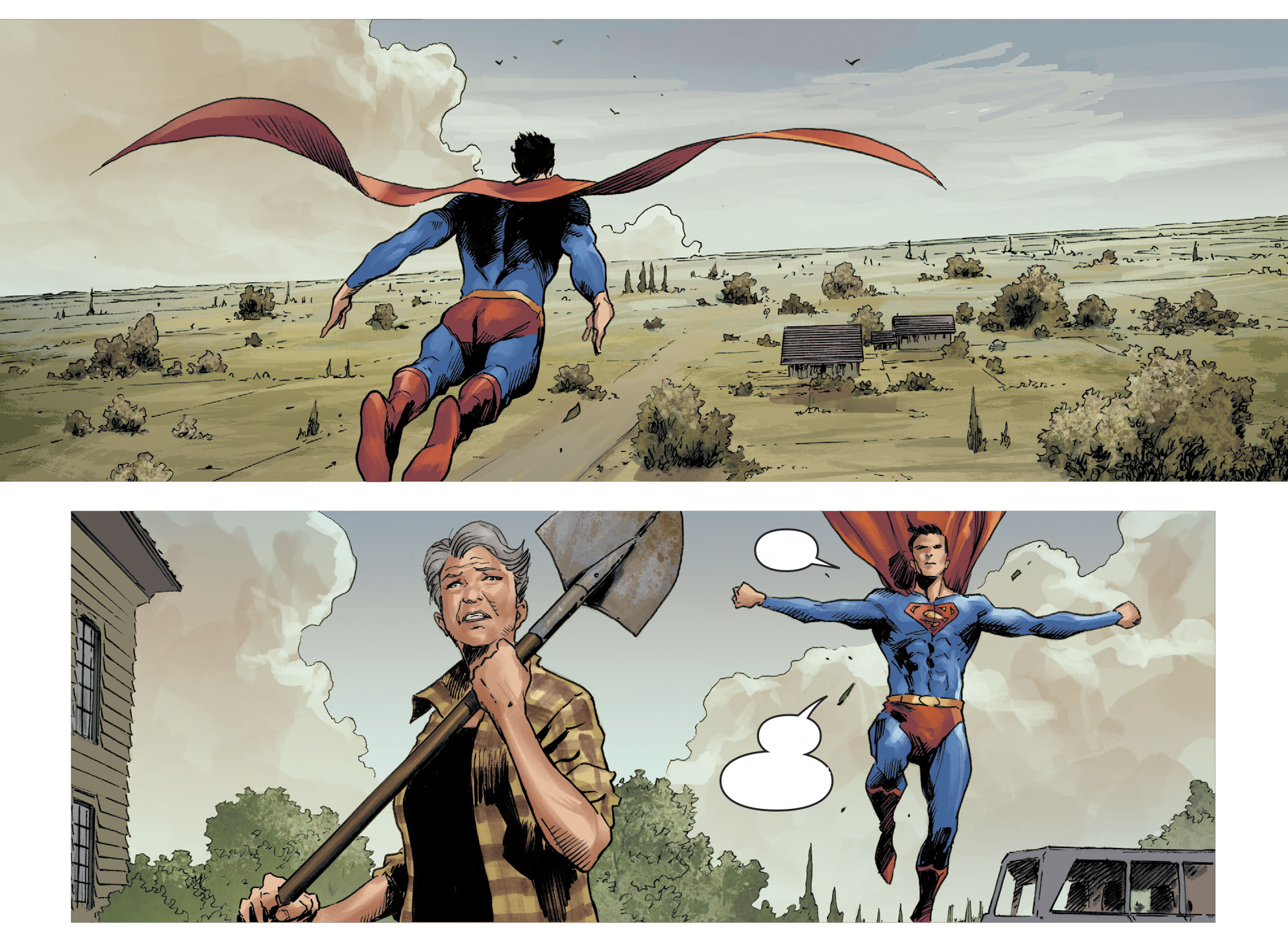Superman은 Lois Lane과 아들 Jon을 두고 부모님이 계신 Smallville로 갑니다.