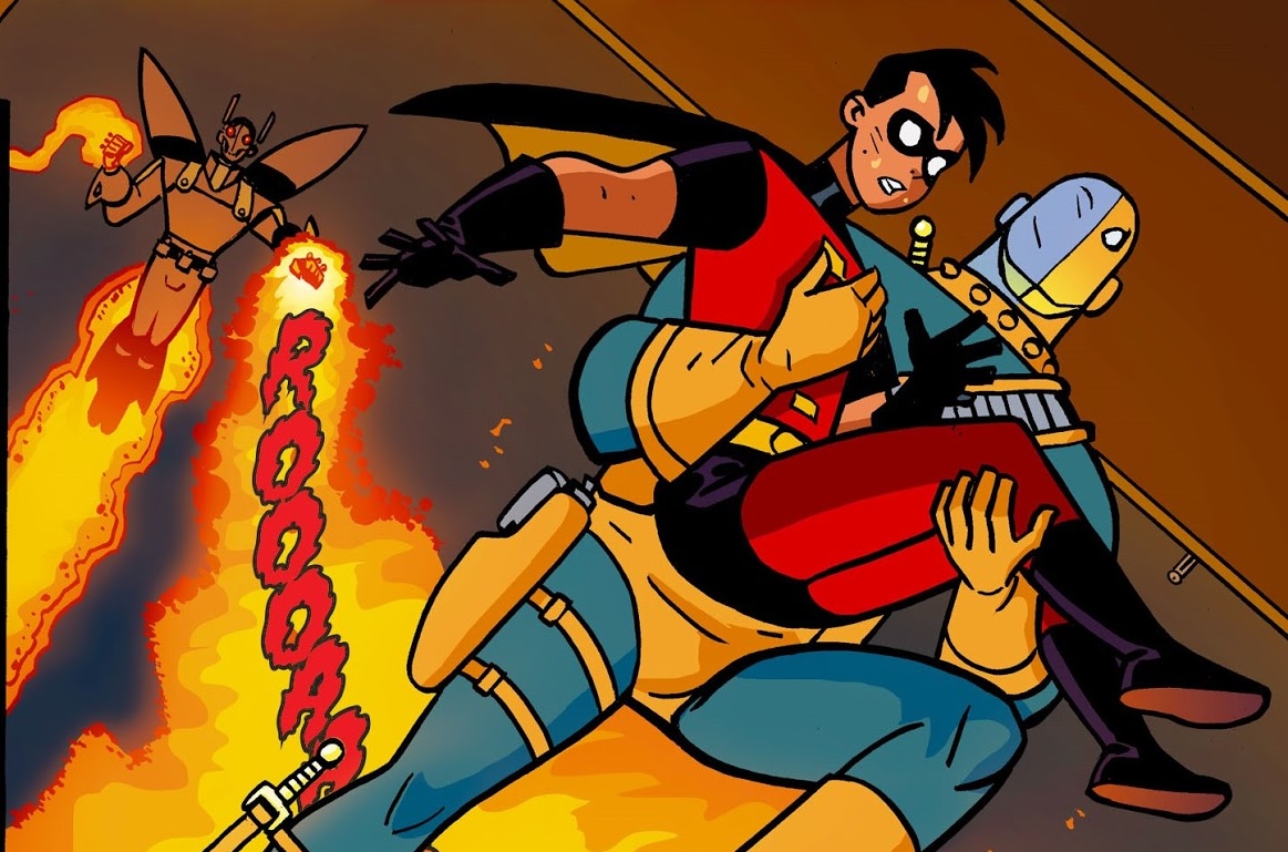 처음에 말벌로 공격을 할 때에는 잘 대처를 했지만 Firefly가 불로 공격을 시도하자 Deathstroke와 Robin은 도망 다니기 바쁩니다.