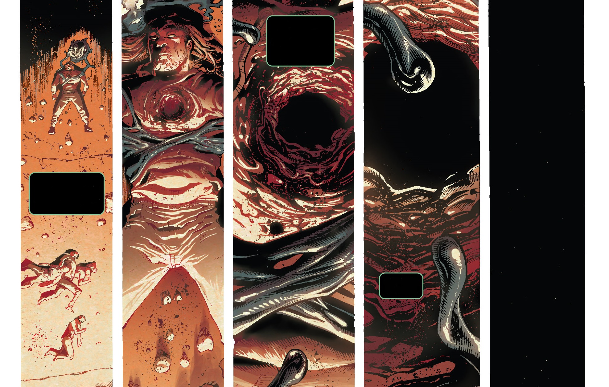 가슴에 구멍이 뚫린 Eddie를 Venom은 다시 살려내기 위해서 자신의 힘을 써서 회복을 시킵니다.