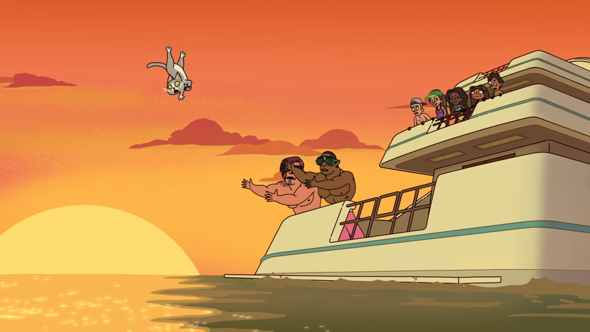 그동안 Jerry와 말하는 고양이는 따로 떨어져 고양이만 파티 보트에 올랐습니다. 마약을 하는 사람들과 섹스 이야기를 하는 사람들 사이에서 고양이는 대화를 시도하려고 하지만 결국 보트에서 쫓겨나지요. 그렇게 다시 Jerry의 곁으로 돌아갑니다.