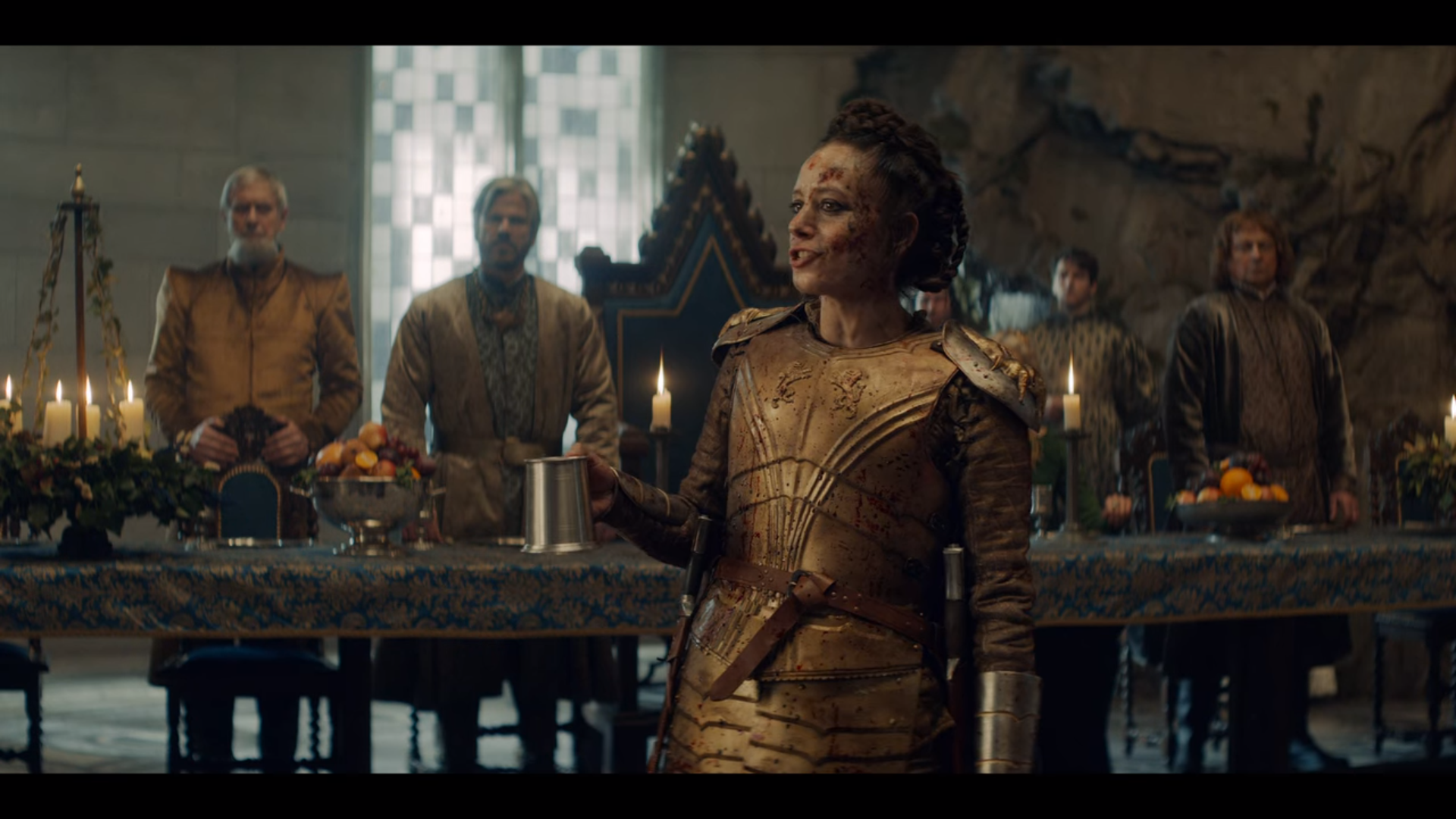 Cintra의 여왕 Calanthe가 연회에 늦게 참석을 하자 본격적으로 연회가 시작되려 합니다. 하지만 2명의 청혼자가 만티코어를 자신이 잡았다고 하면서 상대방의 만티코어 사냥은 거짓이라고 하지요. 둘이 멱살을 잡고 싸우려고 하자 Calanthe는 여기에 귀빈이 있는데 그 귀빈이 누구의 말이 맞는지 알려 줄 수 있다고 이야기합니다.