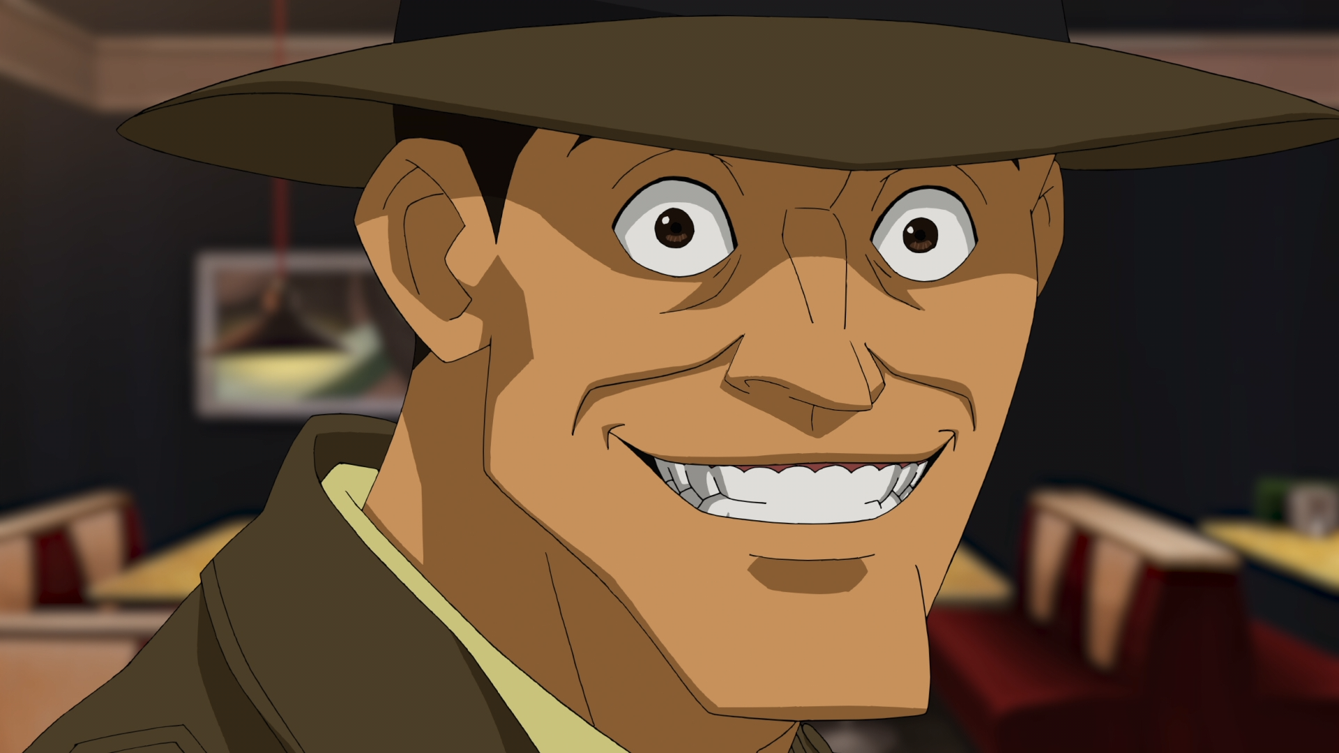 이에 Jason은 자신의 앞에 있던 나이프를 들어 그대로 사내의 눈에 꽂아 버립니다. 그 사내는 웃으며 쓰러지고 화장이 벗겨지며 Joker의 원래 하얀 얼굴이 드러나지요.