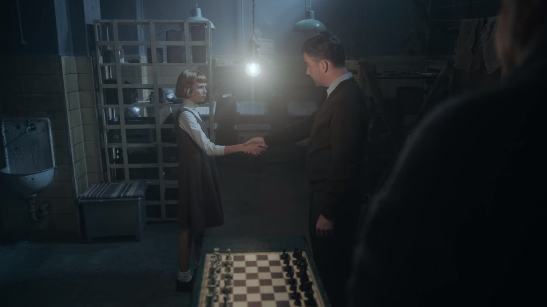 얼마 후 Beth는 Deardorff 원장에게 불려 갑니다. 원장실에는 Ganz 씨가 와서 Beth를 자신이 제직하고 있는 던컨 고등학교에 데리고 가서 학생들과 동시에 체스를 두게 하고 싶다고 하지요. Deardorff는 약간 당황해하면서도 Beth에게 가고 싶은지 물어봅니다. 체스에 완전히 빠져있던 Beth는 그러겠다고 합니다.