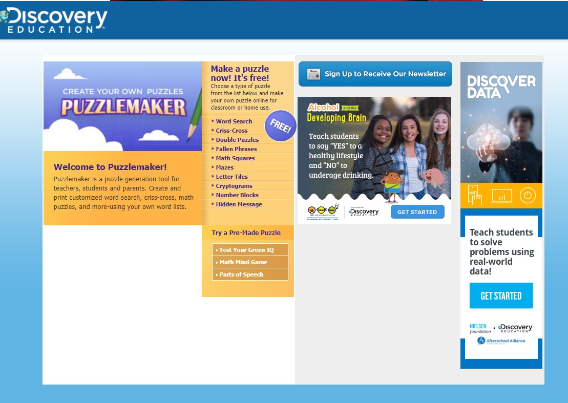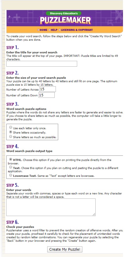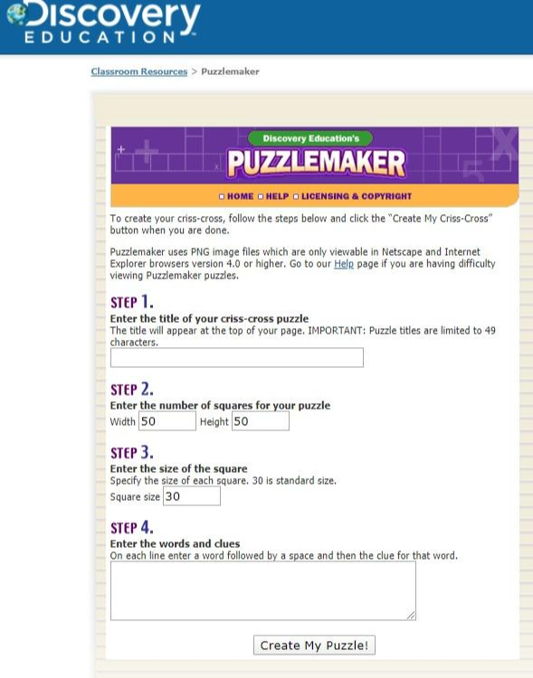 Welcome to Discovery Education's Puzzlemaker! Create crossword puzzles, word searches, mazes, and other puzzles for your classro