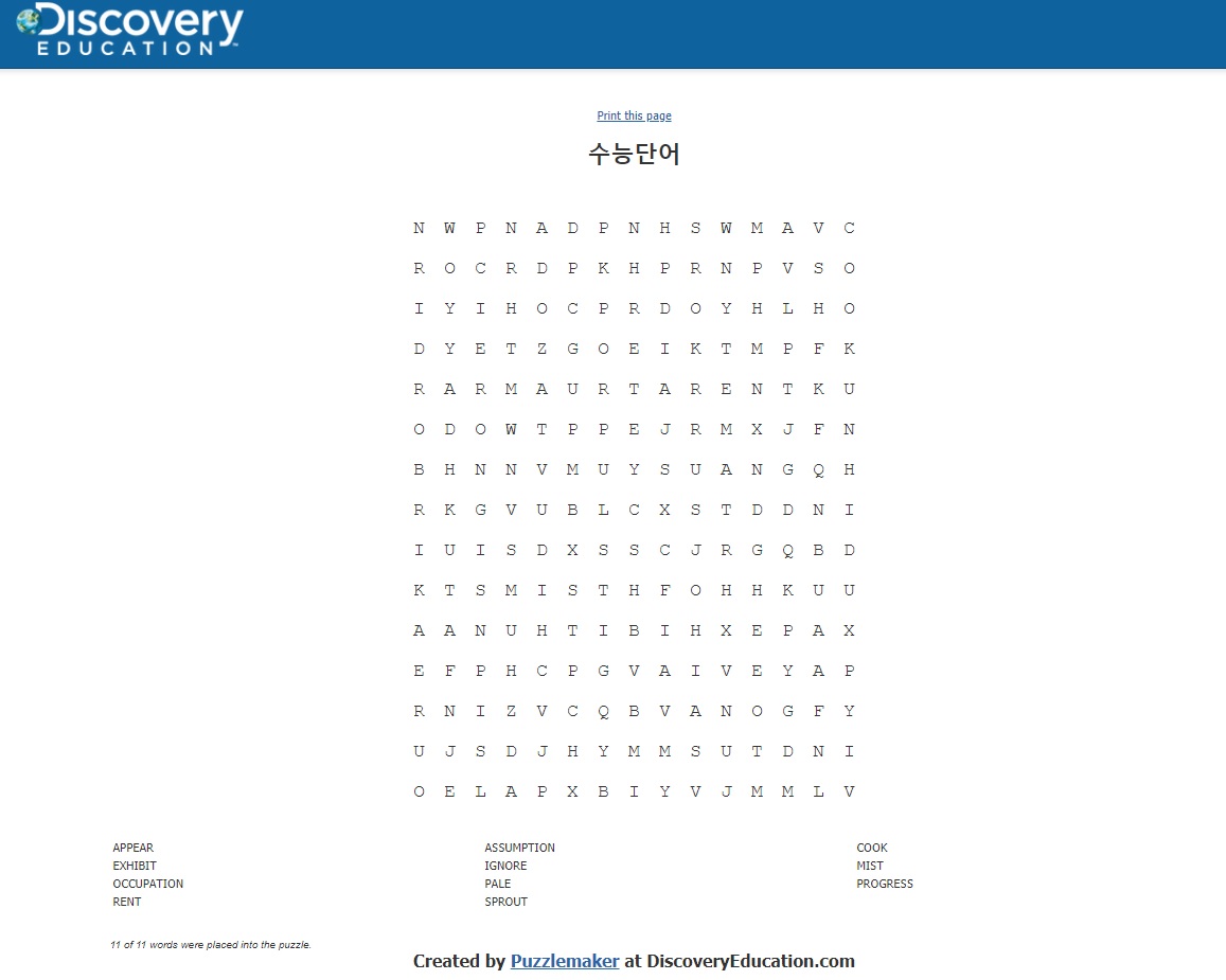 이 Word Search는 정말 학생들이 좋아합니다. ㅋㅋ