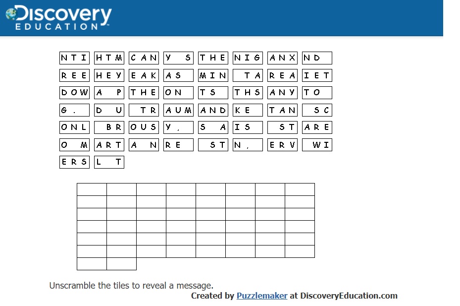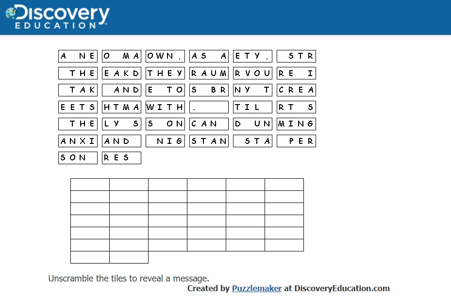 Welcome to Discovery Education's Puzzlemaker! Create crossword puzzles, word searches, mazes, and other puzzles for your classro