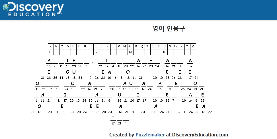 저번 포스팅에 이어서 DIscover Edcuation Puzzle Maker의 기능 Letter Tiles, Cryptograms에 대하여 알아봅시다.