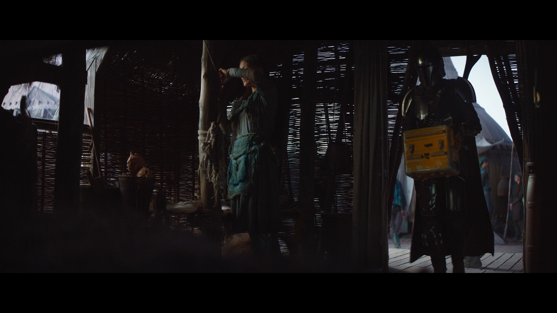 The Mandalorian과 꼬마 요다는 제공받은 숙소에서 짐을 풉니다. 그리고 꼬마 요다는 아이들과 놀러 나가고 The Mandalorian은 숙소를 제공해준 한 여인과 헬멧에 대하여 이야기를 나눕니다.