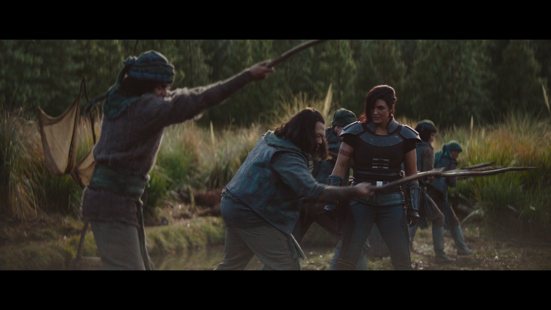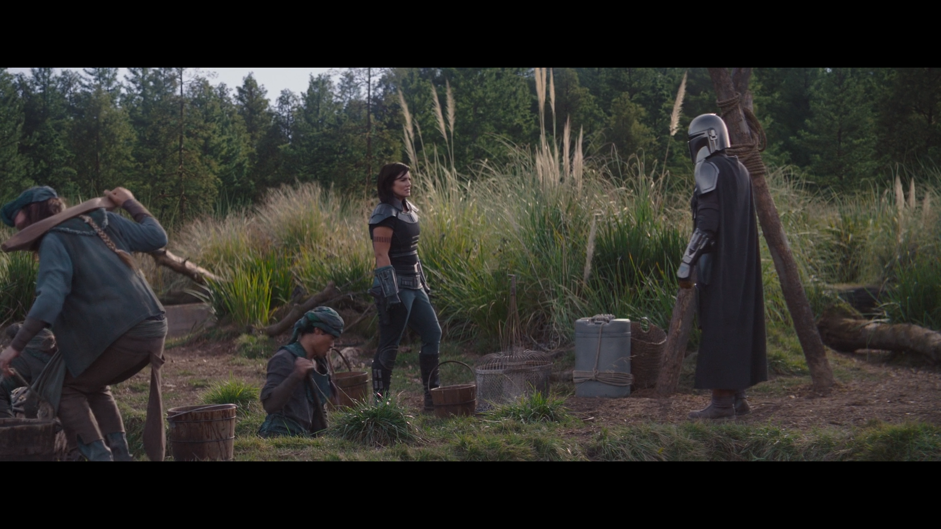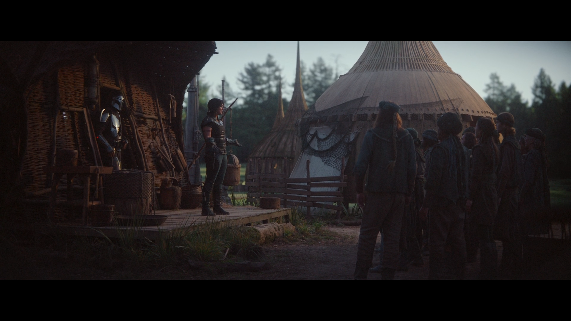 그렇게 마을 사람들은 Cara Dune과 The Mandalorian의 지도 하에 열심히 방책을 세우고 마을을 방어할 준비를 합니다.