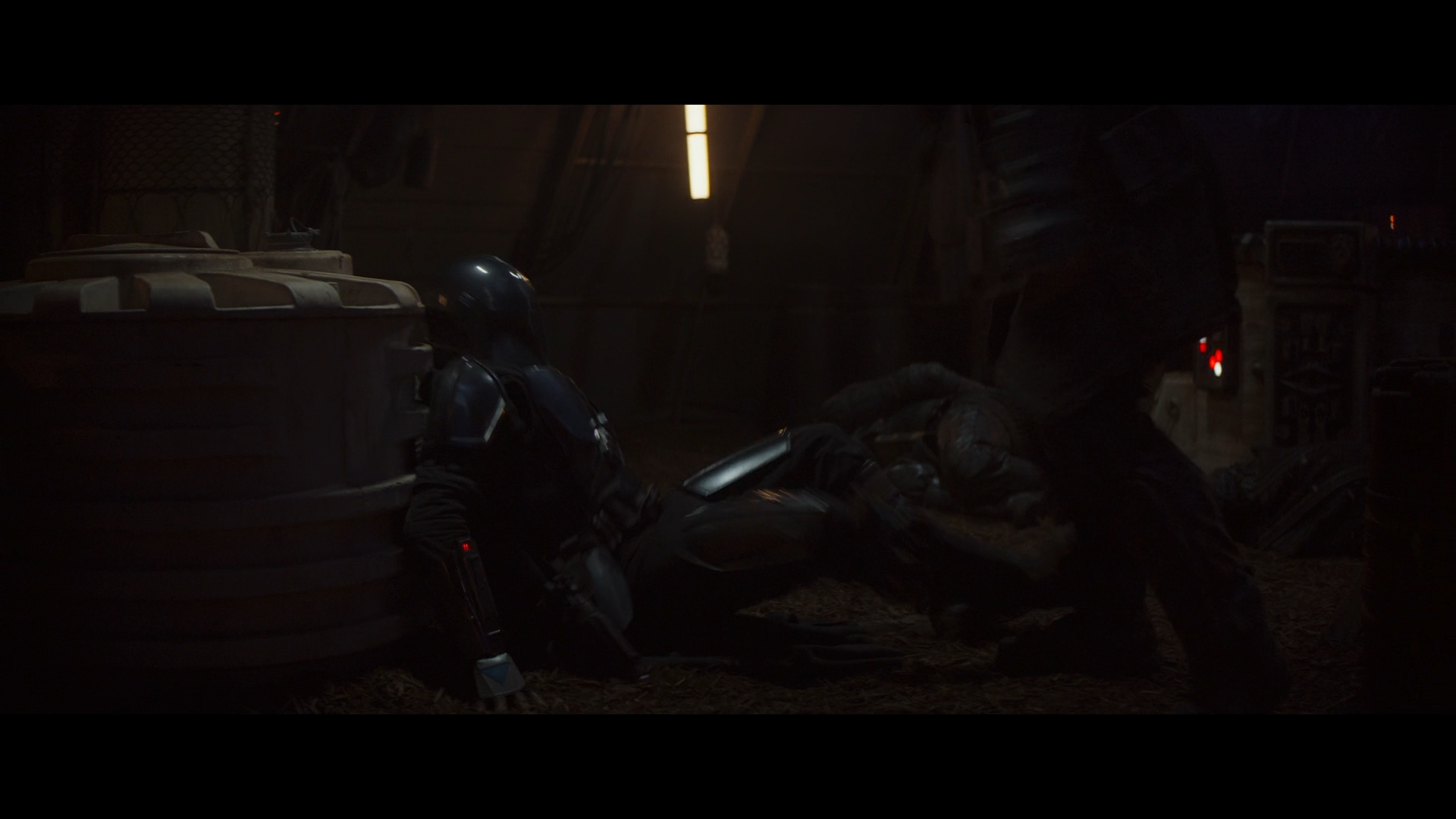 저녁이 되어서 Cara Dune과 The Mandalorian은 숲 속의 강도단 본거지로 향합니다. 교란을 주기 위해 폭탄을 설치하는 과정에서 들키게 되고 싸움이 벌어집니다. 처음에는 강도단 몇 명을 제압했지만 AT-ST가 일어나자 바로 마을을 향해 달리기 시작합니다.