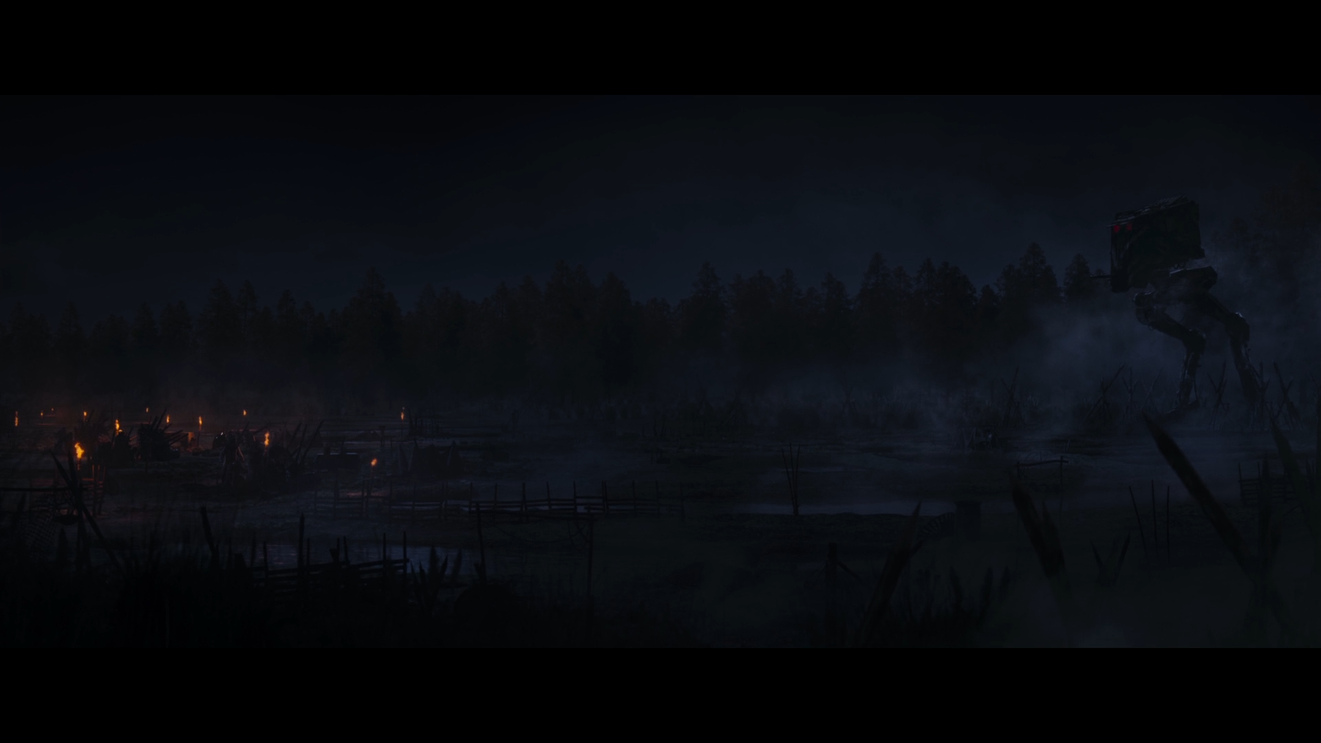 AT-ST는 함정이 있다는 것을 알기라도 한 듯 함정 앞에서 마을을 공격합니다.