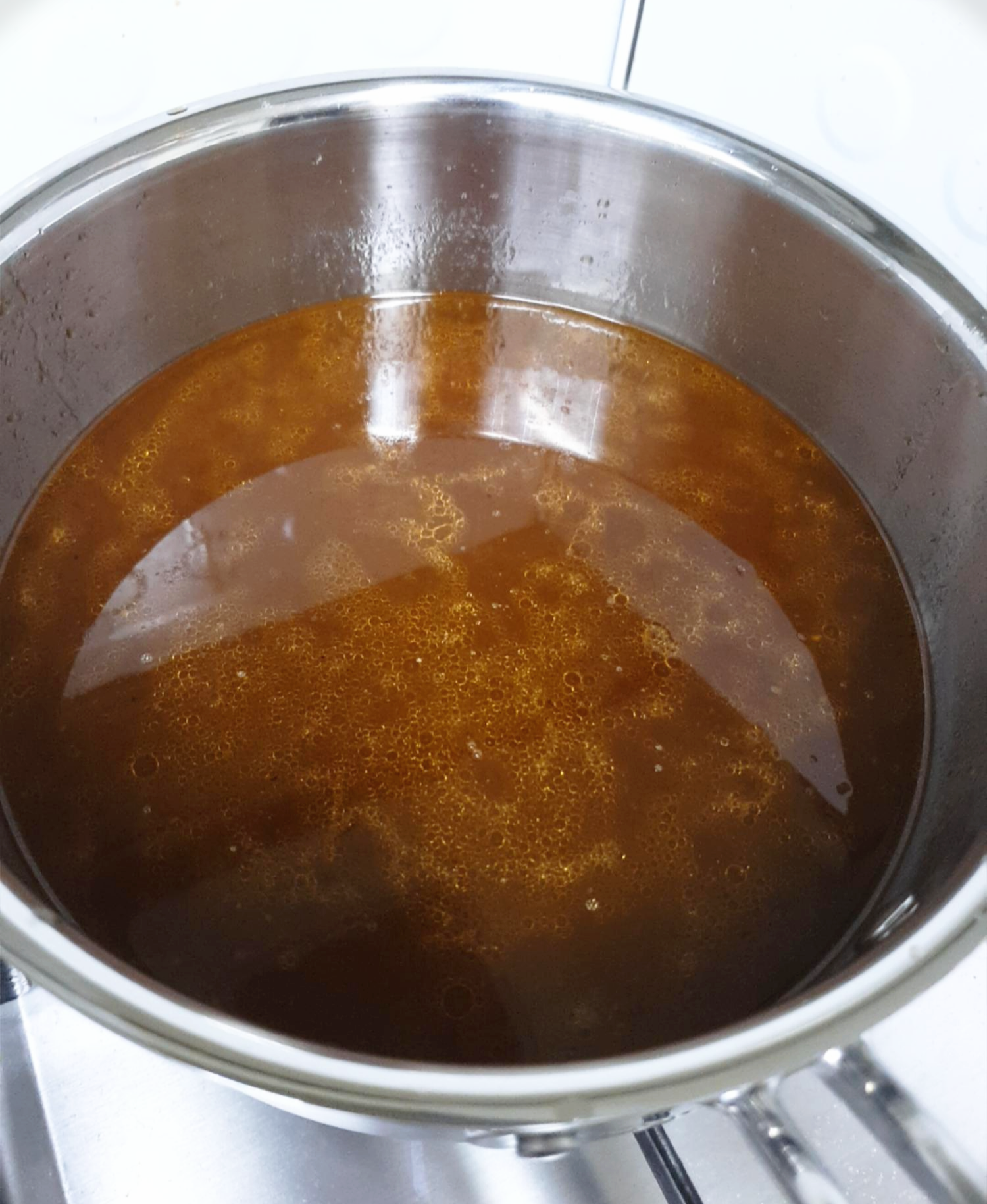 그러면 이렇게 거품이 뜨는데 걷어주고 불을 아주 작게 줄여서 최소 8시간을 끓여 줍니다.