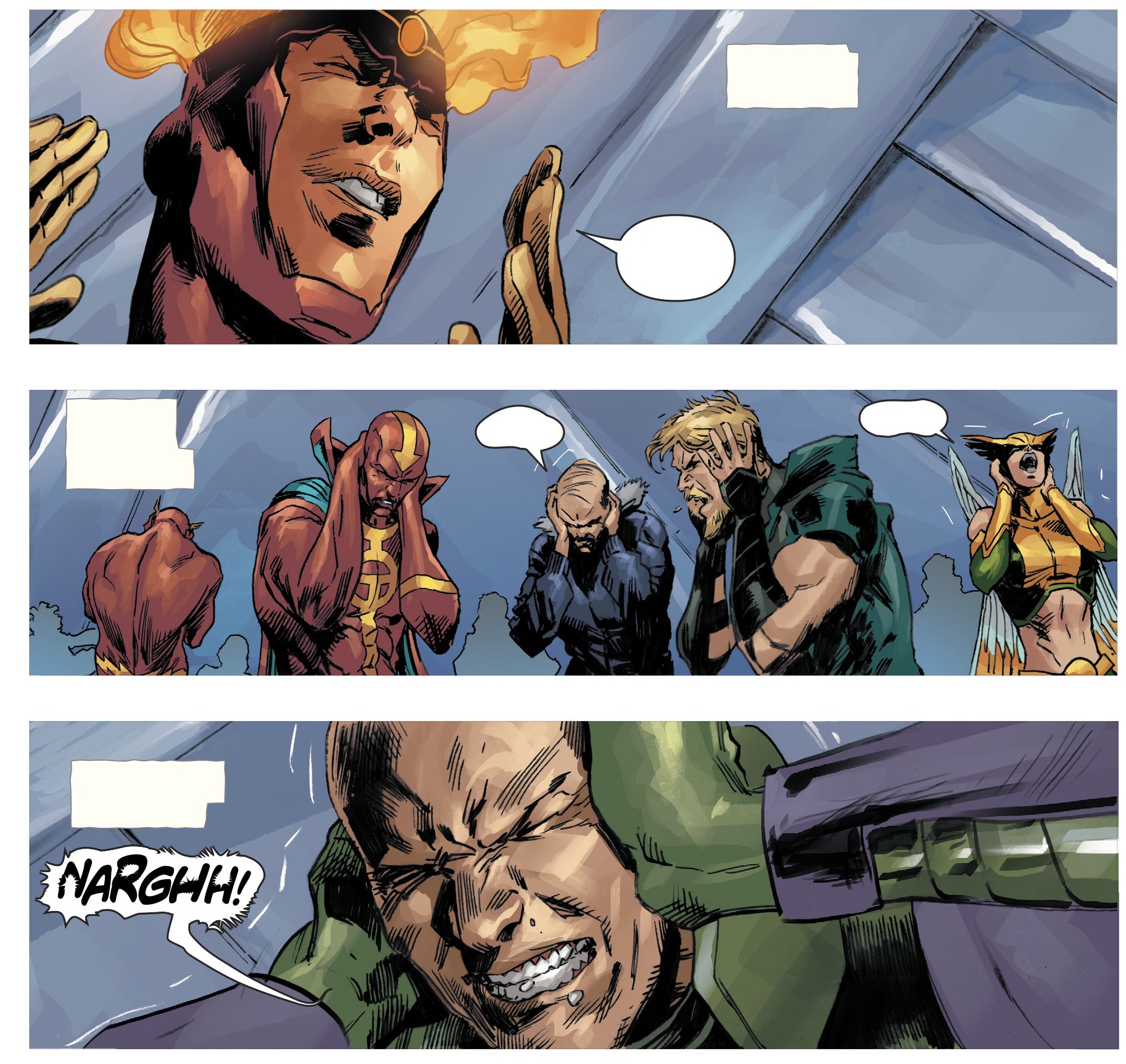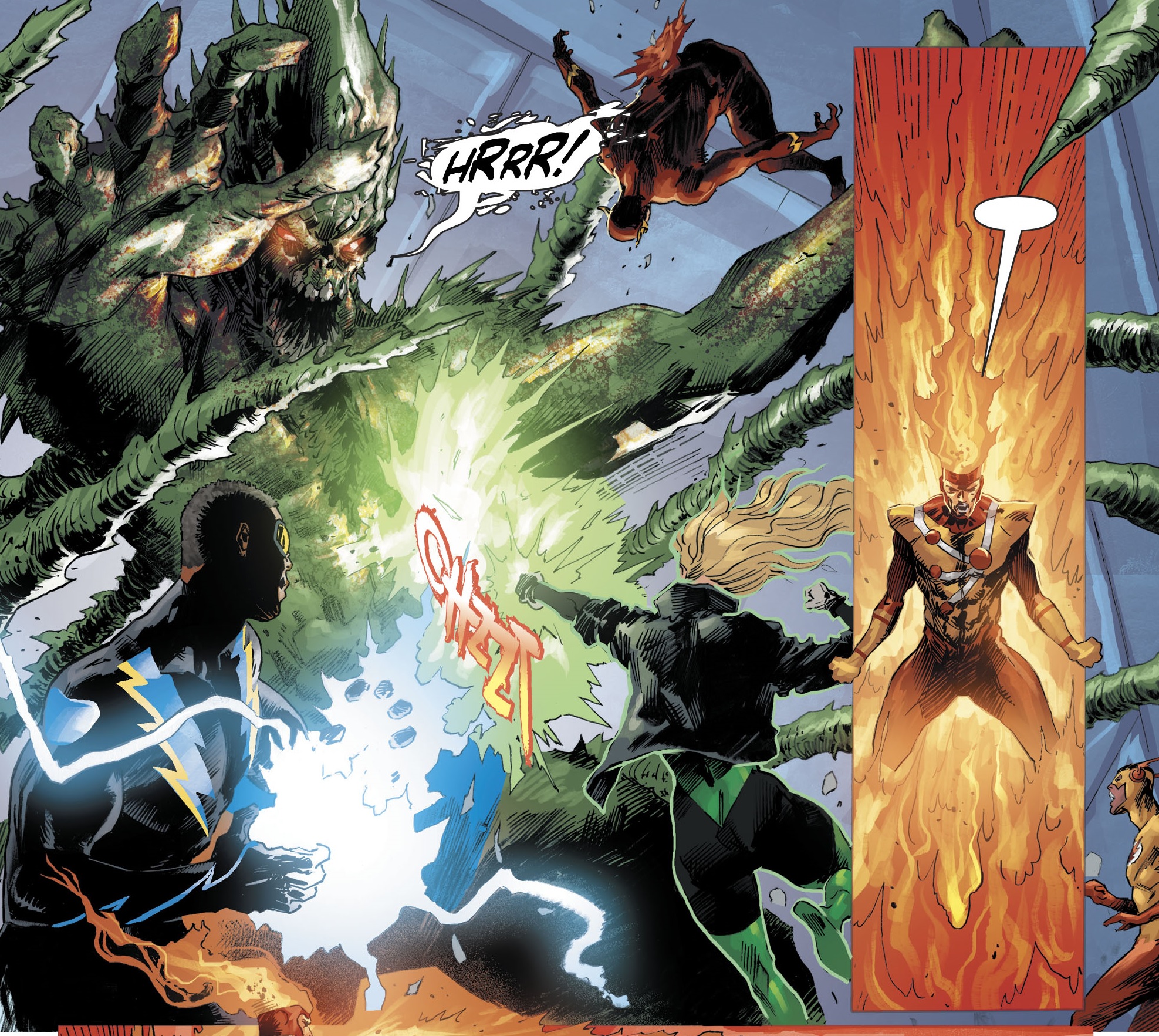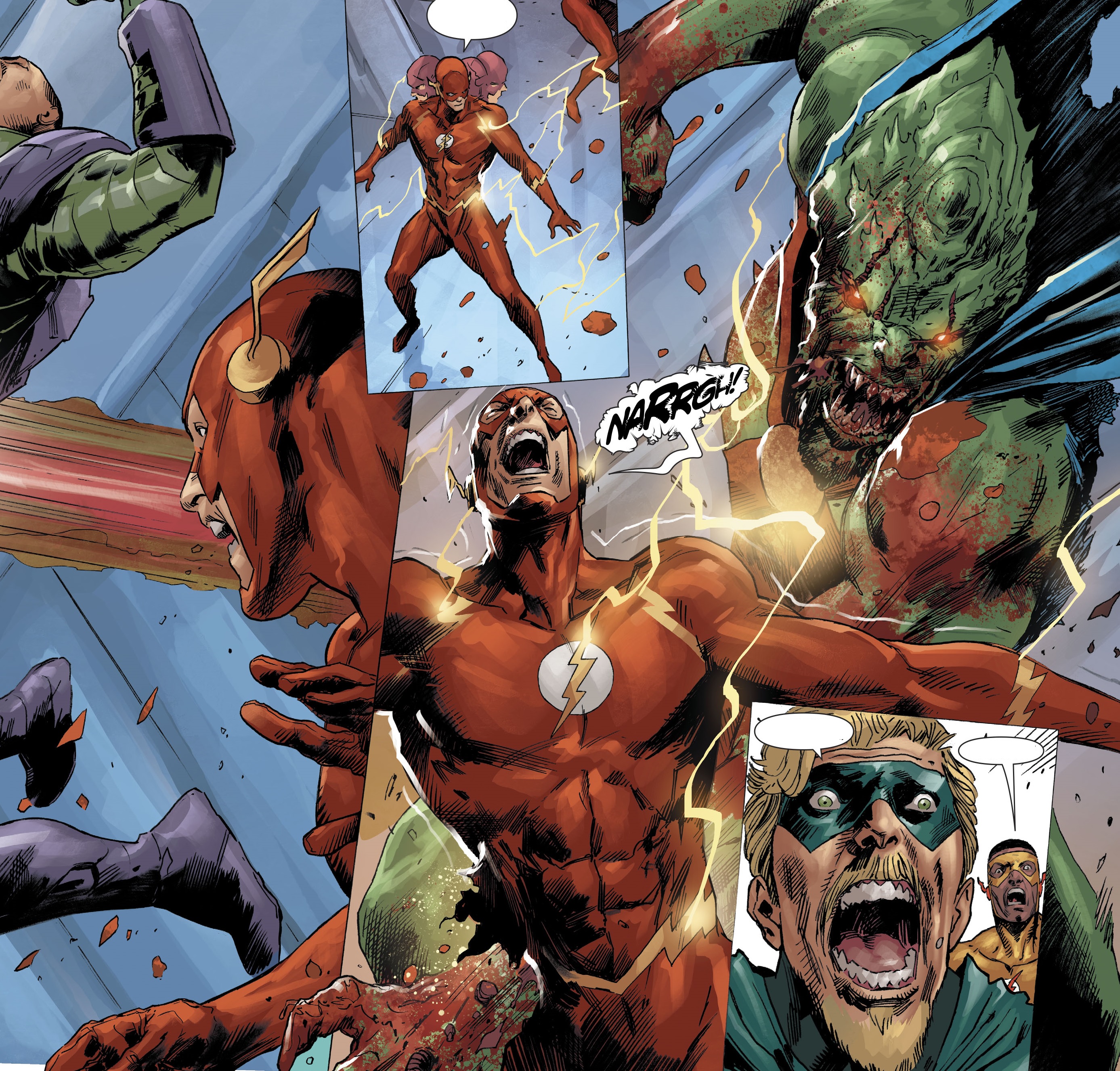 그렇게 방주가 설립이 되고 사람들을 모아서 방주에 태우기 시작합니다. 하지만 모든 히어로들을 모으는 과정에서 Martian Manhunter가 히어로들을 공격해서 Lex는 죽고 Flash는 다치게 됩니다. 그리고 지옥이 시작됩니다. 소리보다도 빠른 속도로 Flash는 지구의 남아있는 사람들을 감염시키기 시작합니다.