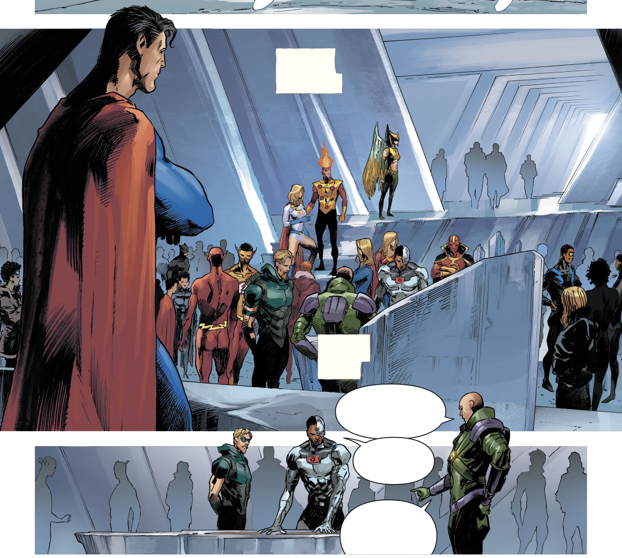 고독의 성채에 Cyborg와 Lex Luthor는 다시 한번 히어로들의 장소를 만듭니다. 그리고 지구를 떠날 준비를 해야 한다고 합니다. Superman은 그것을 원치 않았지만 사람들을 살리기에는 그것이 유일한 방법이라고 이야기합니다.