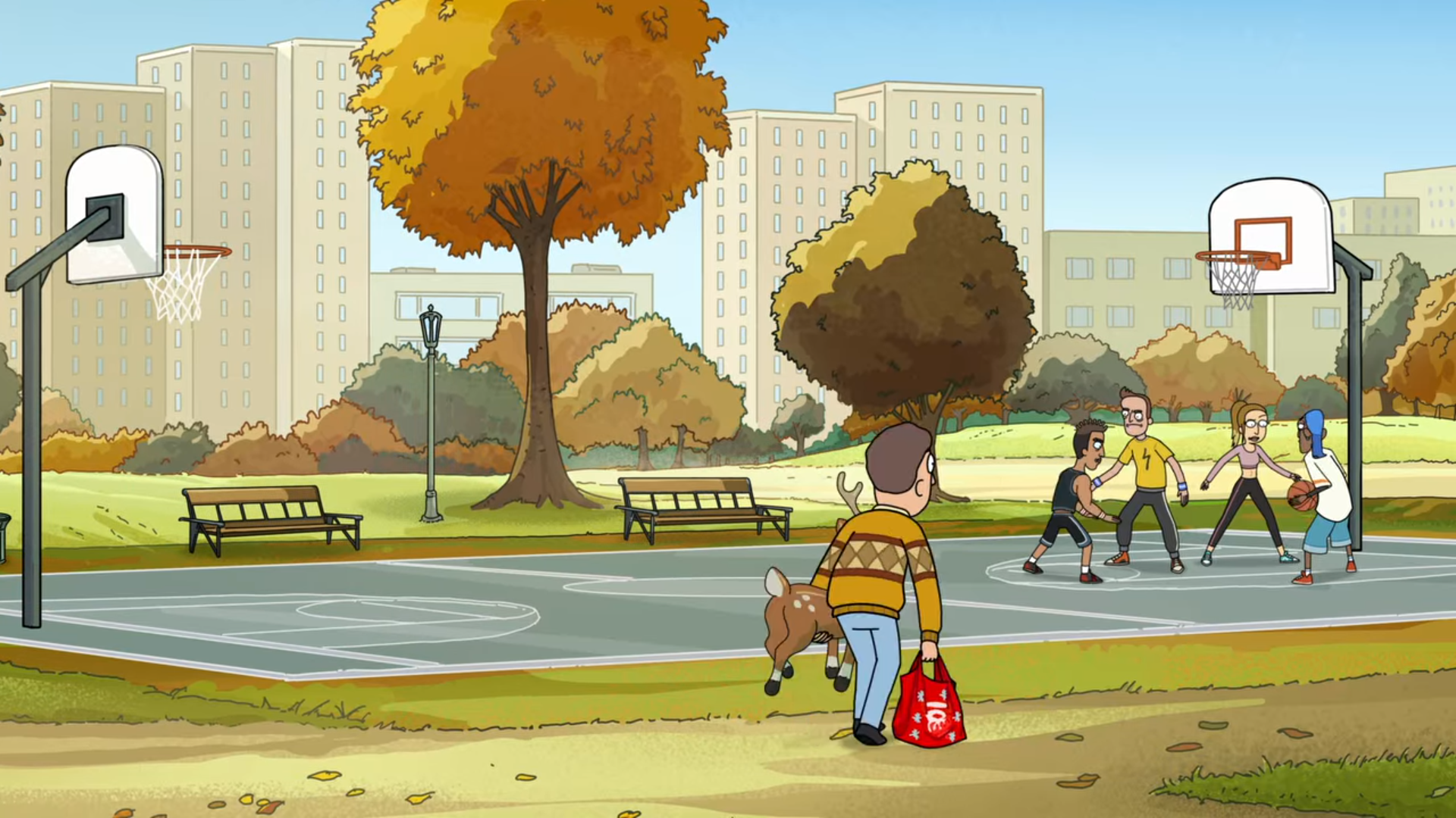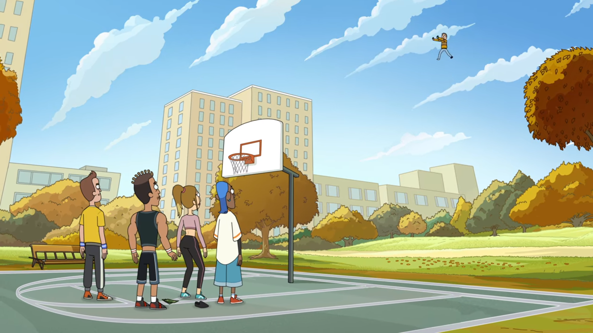 공기보다 가벼워진 Jerry는 도심으로 나가 농구를 하고 있는 사람들에게 자신의 능력을 보여줄 테니 내기를 하자고 합니다. 하지만 농구를 하는 사람들은 Jerry가 한 말에 대하여 기분 나쁘게 생각하면서 인종차별적 발언이라고 하지요. Jerry는 오해를 풀기 위해 농구공을 빼앗아 골대로 향하다 신발이 벗겨져서 하늘로 떠올라 날아가 버립니다.