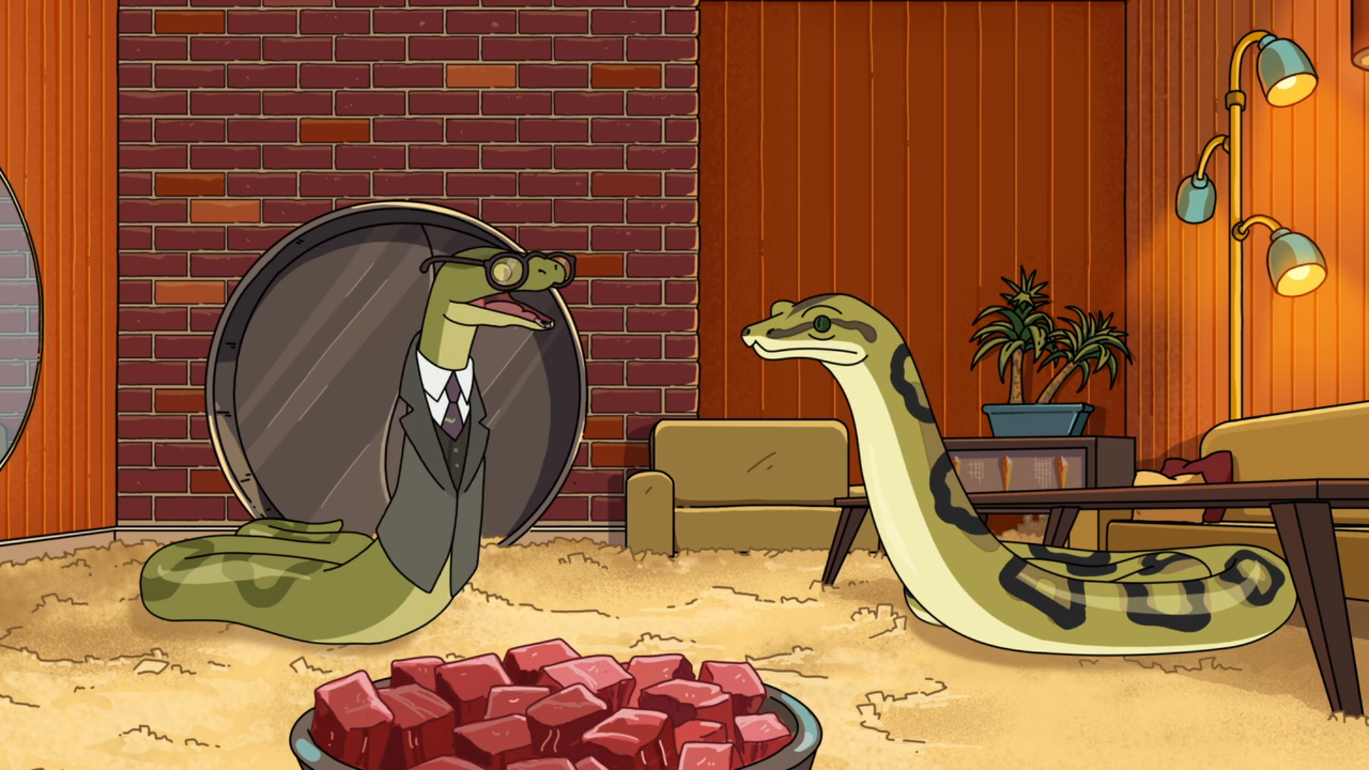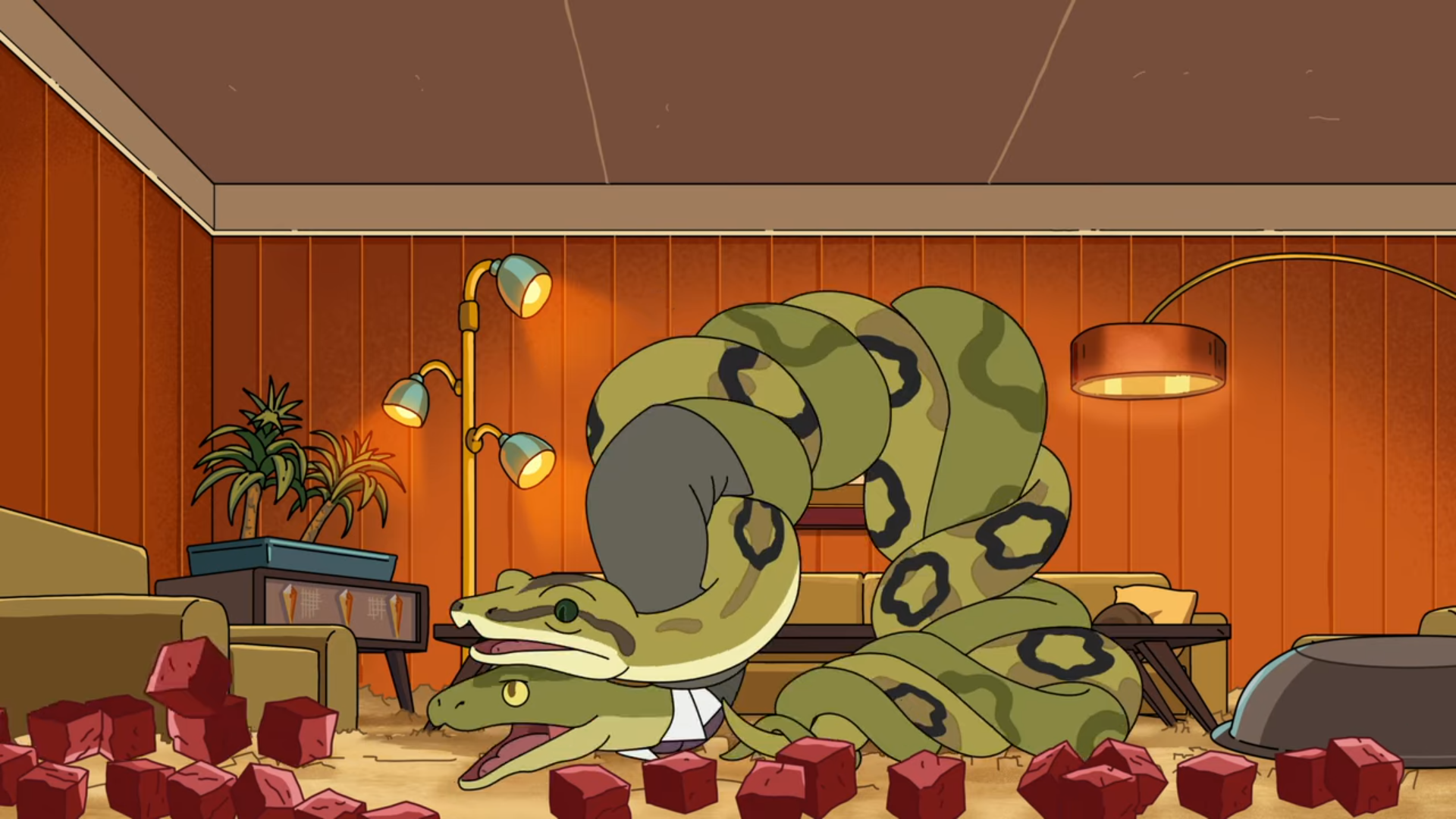 Morty는 자신이 죽인 우주 뱀에 대하여 죄책감을 가지고 집으로 돌아옵니다. Rick은 그냥 자신은 모르 척하겠다면서 넘어가려 하지만 Morty는 자신이 죽인 뱀과 비슷한 뱀을 사서 우주복을 입혀 다시 그 행성에 데려다줍니다.