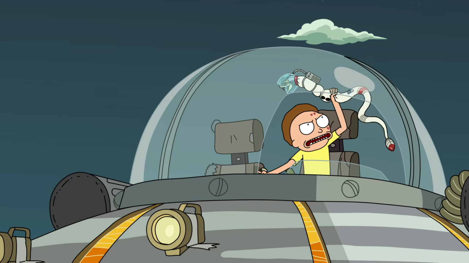 하지만 Morty는 자신이 죽인 우주 뱀에 대하여 죄책감을 가지고 있습니다.