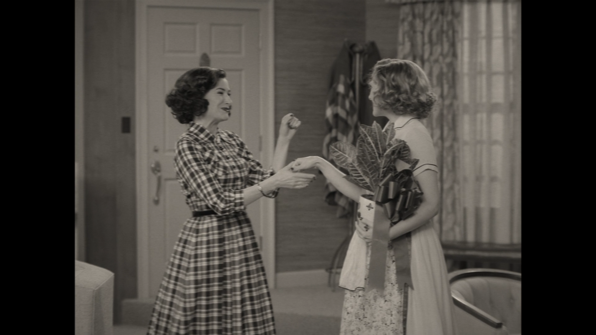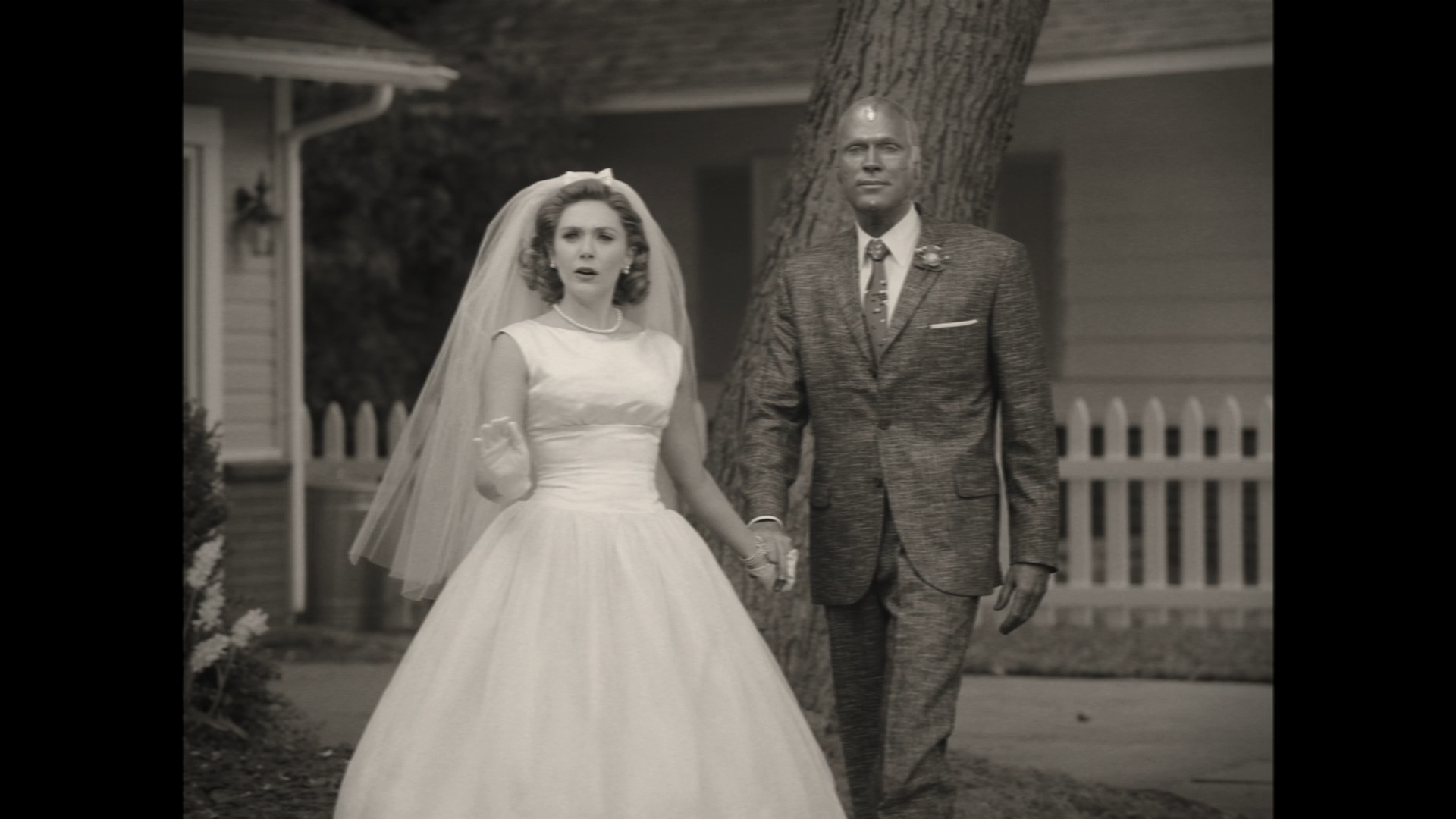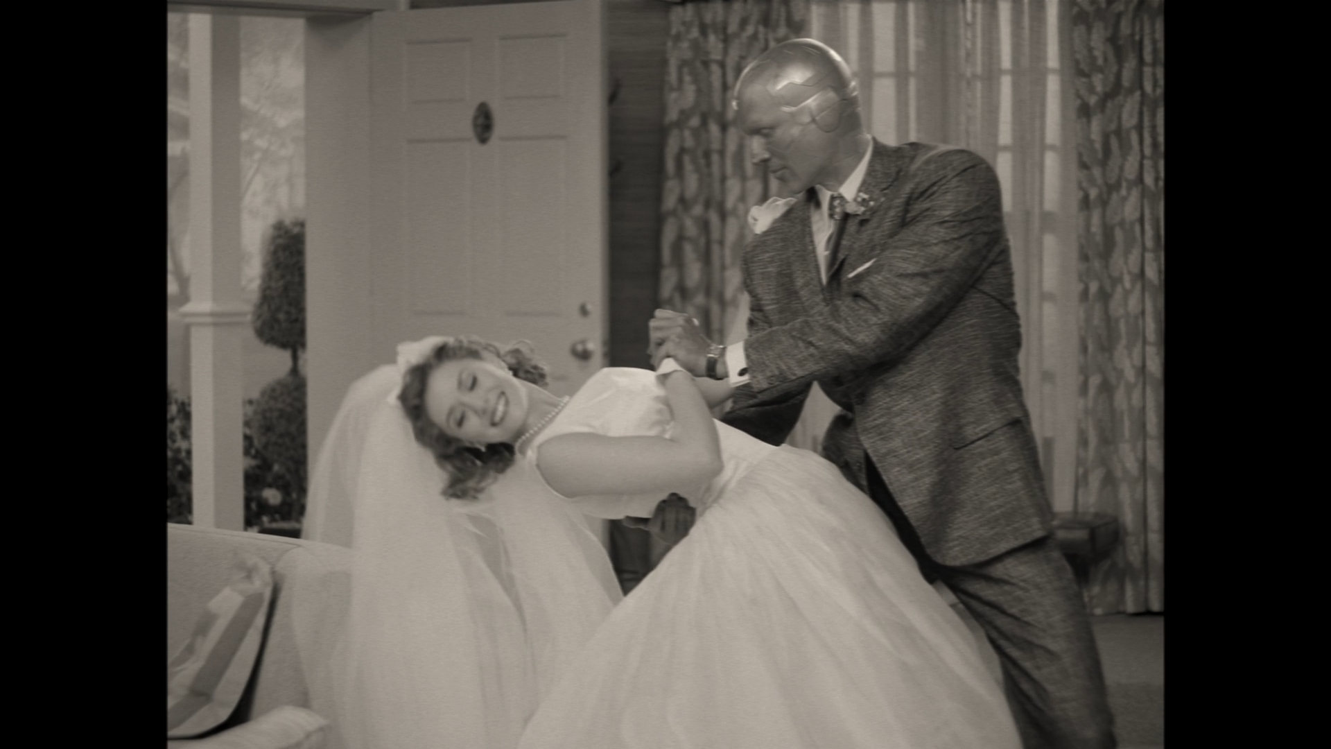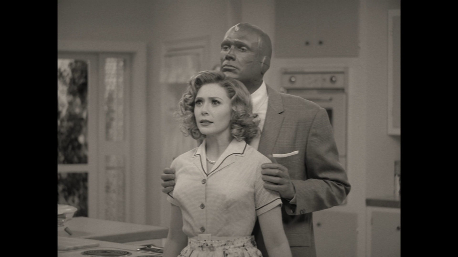 하지만 무슨 기념일인가를 둘 모두 알지 못하지요. 둘은 서로 아는 척을 하면서 무슨 기념일 인가 말해보라고 하지만 좋은 날이라고 하면서 대답을 피합니다. 그렇게 그냥 알겠다고 얼버무리면서 Vision은 직장으로 떠납니다. 그리고 Wanda는 집에서 여전히 무슨 날인지 궁금해합니다.
