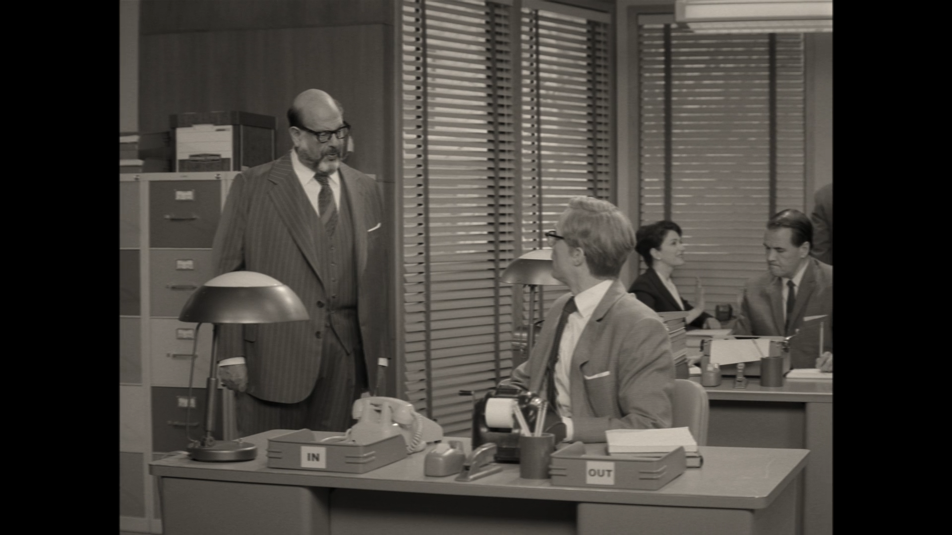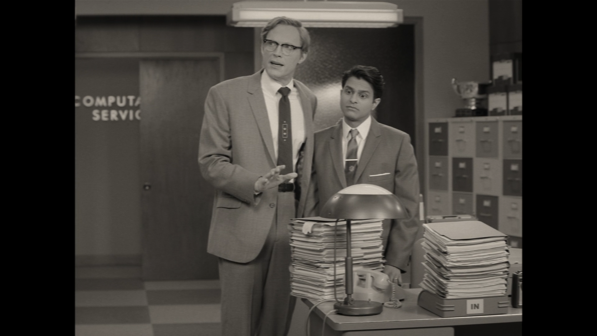 직장에 출발한 Vision은 기계답게 엄청나게 빠르게 일을 처리합니다. 직장은 전산처리를 하는 회사입니다. 회사의 일을 모두 끝내고는 자료를 옆 동료에게 넘겨주면서 정확히 이곳에서 하는 일이 무엇인지 물어봅니다. 하지만 그 직장동료는 전산을 하는 곳이라고 하고는 무엇을 하는지 말해주지 않습니다.