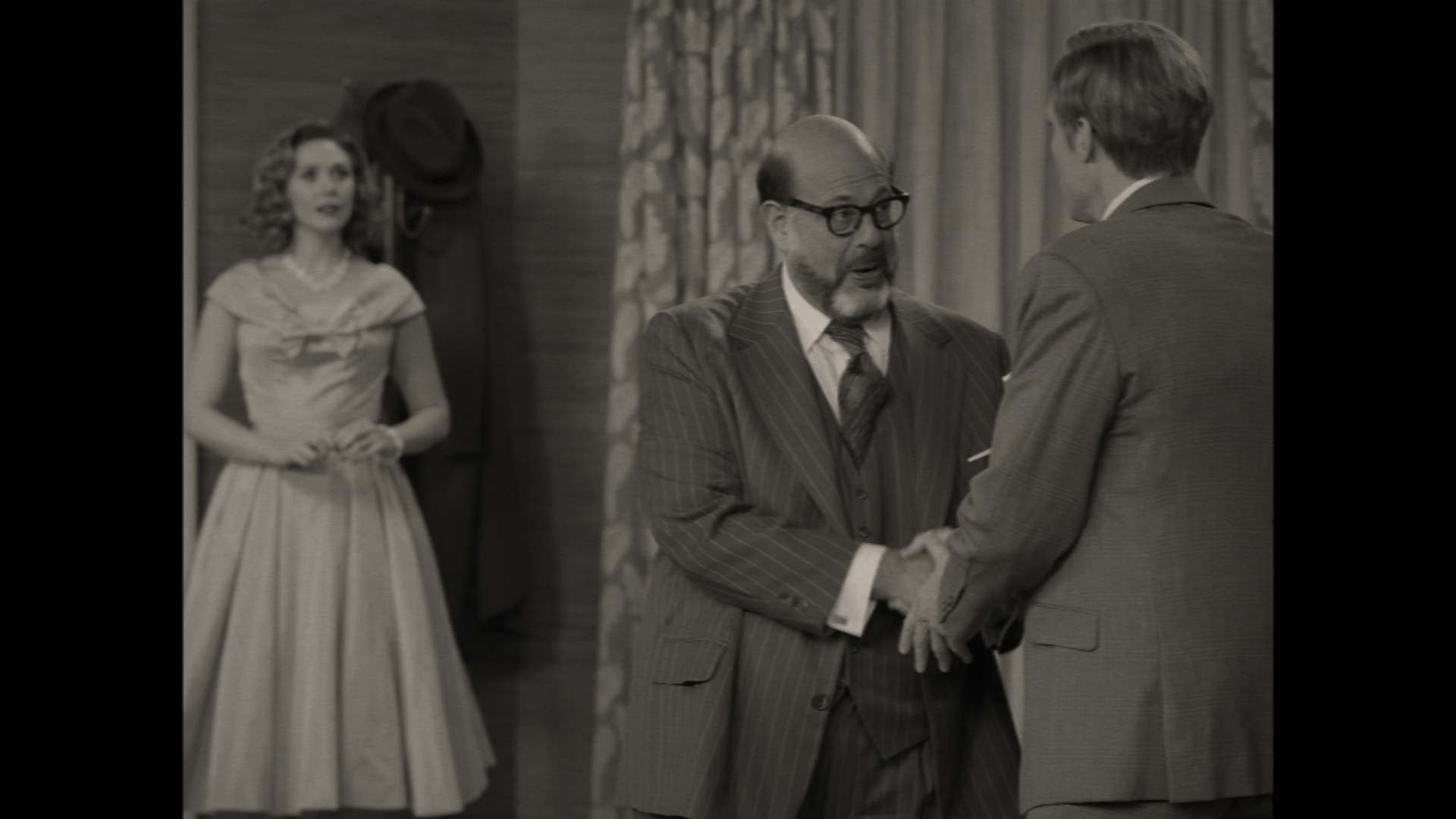 이에 보다 못한 Wanda는 Vision에게 Mr. Hart를 도와주라고 하지요. Vision은 능력을 사용해서 Mr. Hart를 구합니다. 다시 괜찮아질 Mr. Hart는 갑자기 시계를 보고서 벌써 시간이 늦었다고 하면서 그만 가봐야겠다고 합니다. Mrs. Hart는 Wanda에게 Sokovian 식 인사를 하고는 가겠다고 합니다.