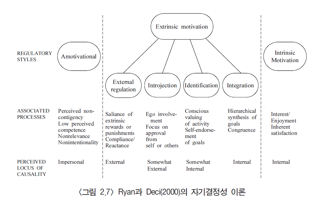 하지만 Deci와 Ryan은 여기서 멈추지 않고 동기를 어떤 수평적인 단계로 이해를 했다고 할 수 있다. 그렇게 나온 것이 자기 결정성 이론 (Self-determination Theory)라고 할 수 있다.