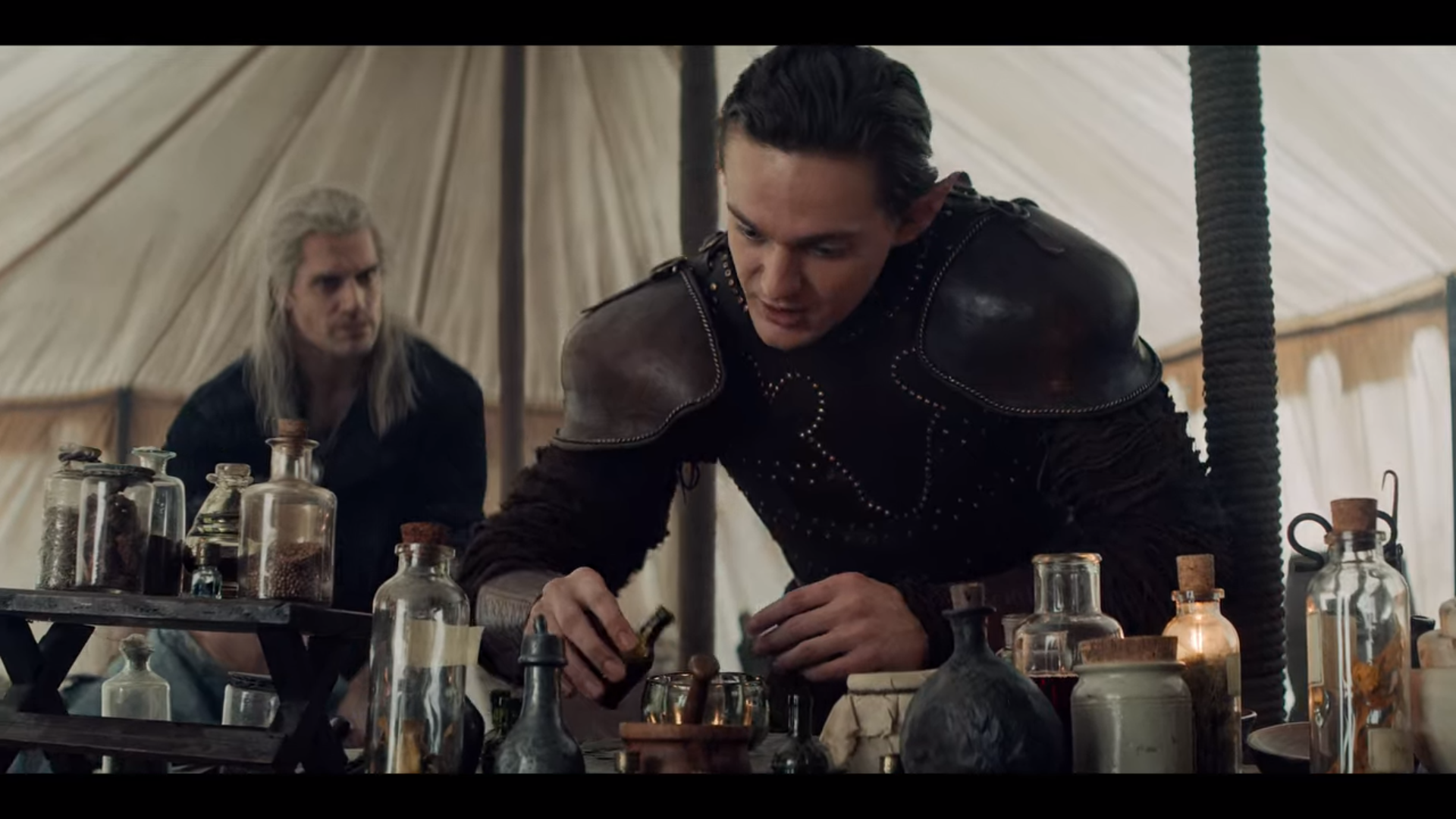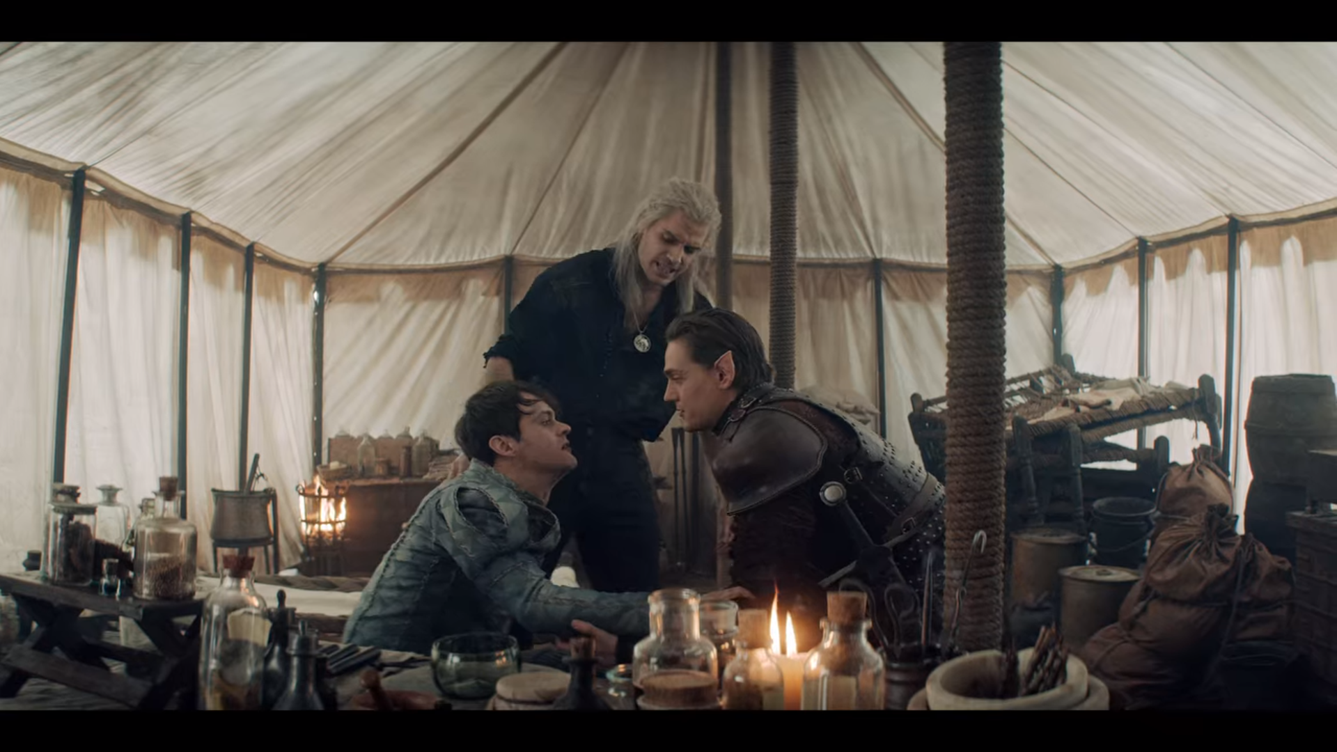 Geralt는 Jaskier를 데리고 근처에 있는 캠프로 갑니다.