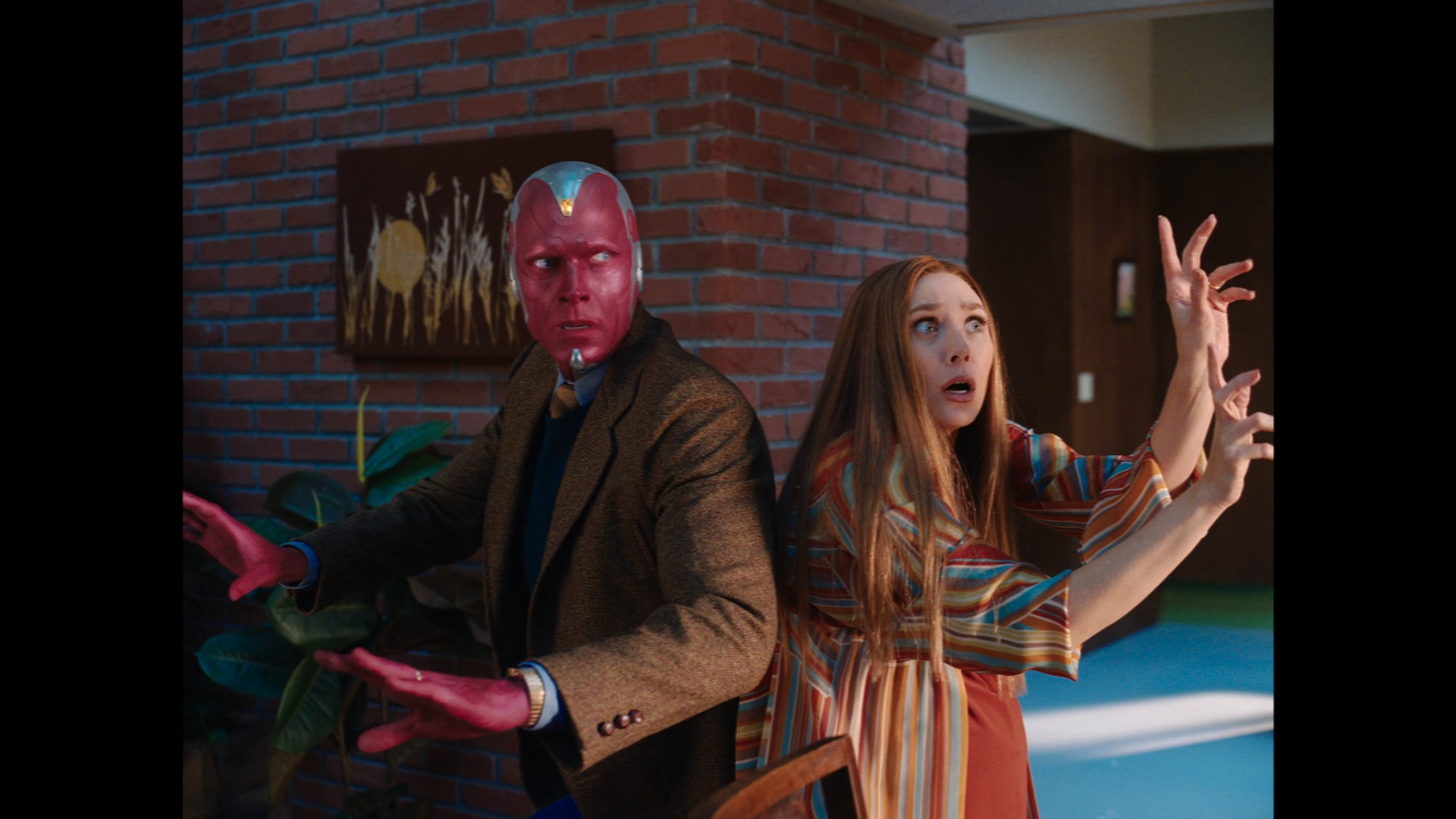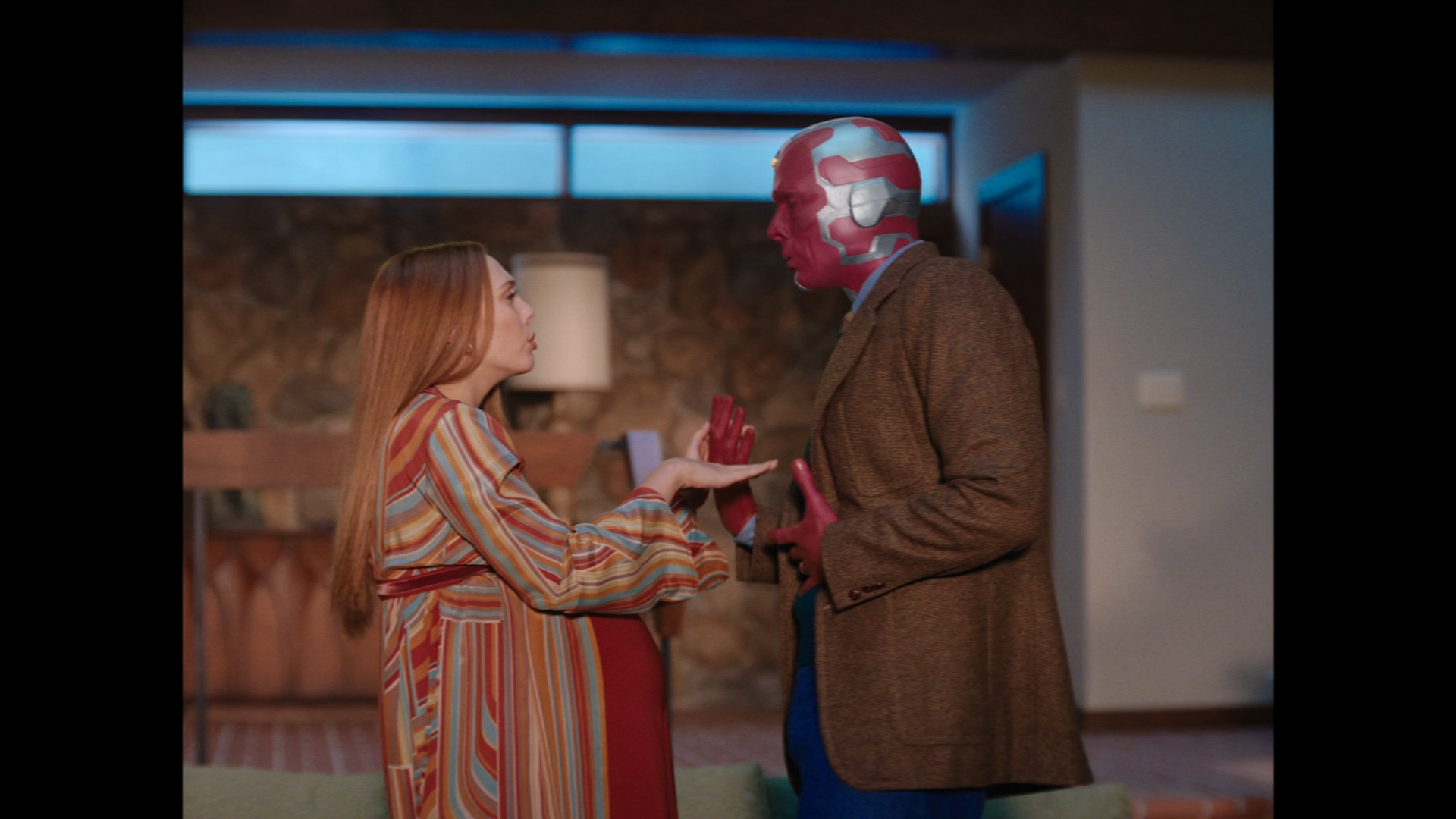잠시 밖에 전기를 보러 갔던 Vision이 돌아오고는 Wanda에게 무언가 이상하다고 이야기합니다. 이 마을과 지금 이 형국이 무언가 수상하다고 이야기하지요.