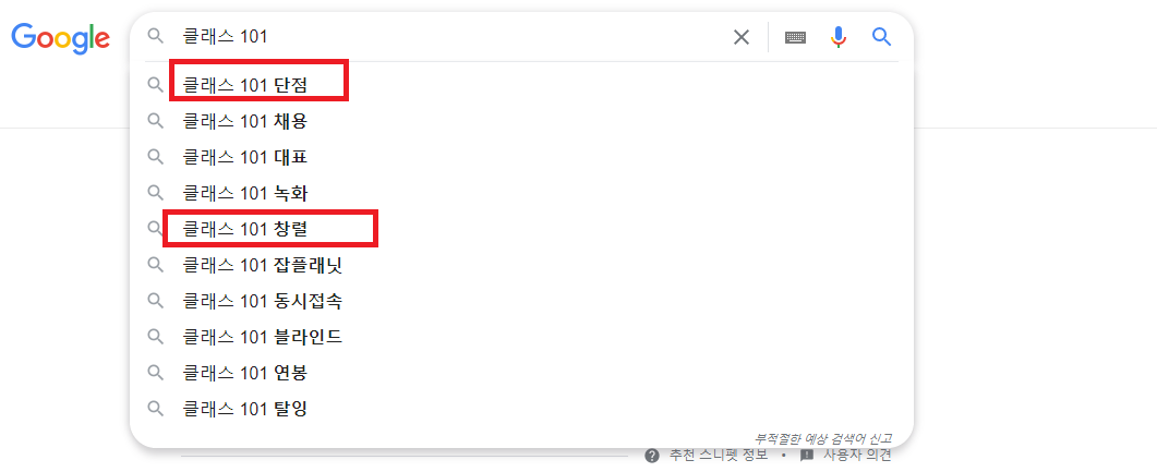 검색을 통해 보면 단점과, 창렬이란 검색어가 나온다. 이를 통해 검색을 해보면 클래스101의 수업들이 가격은 비싸지만 수업의 퀄리티가 좋지 않다는 의견들이 다수 존재한다.