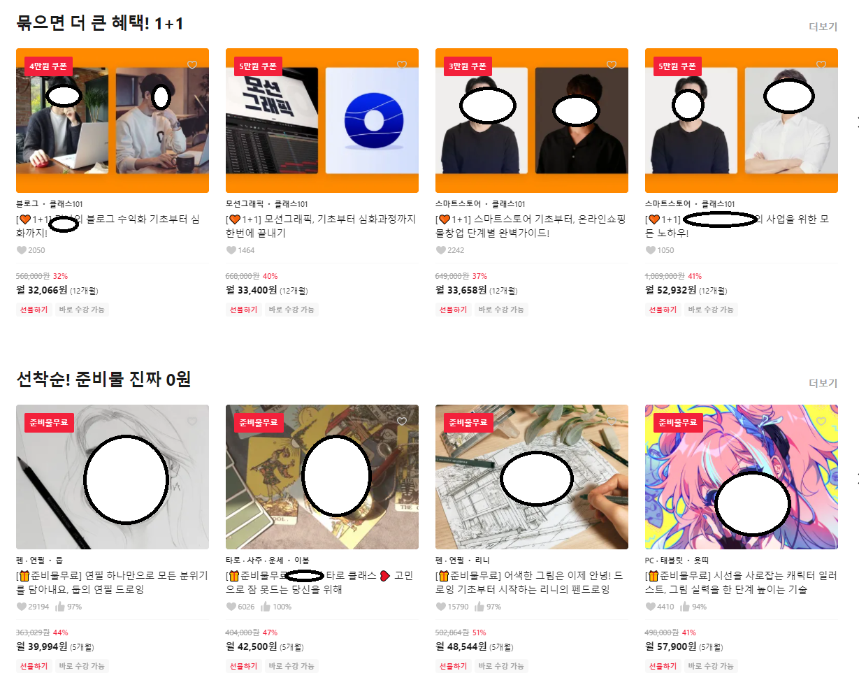 이는 클래스101에도 마찬가지로 이미 클래스101이 다양하게 수업을 구성하고 있으며 고도화가 된 만큼 가격이 올라갔지만 퀄리티의 이유로 몇몇 사용자들이 불만을 가진다고 가격을 대폭 낮출 수는 없는 것이다. 이에 궁여지책(?) 정도로 쿠폰, 세일, 준비물 무료 등의 전략을 사용할 수 있지만... 이것도 개인적으로는 좋은 전략 같지는 않다.