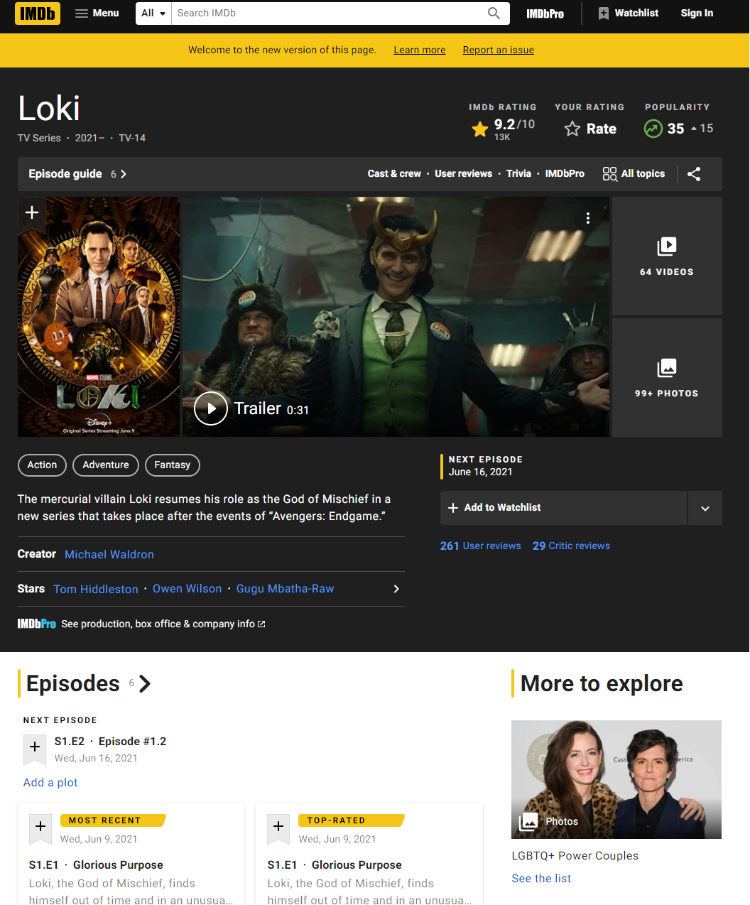 구체적인 첫 번째 UX의 예를 들어보자. 얼마 전 Disney 플러스에서 Loki라는 드라마가 시작이 되었다. 난 이 Loki를 보기 전에 드라마를 심도 깊게 보고 싶은 욕구가 있었다. 그렇기 때문에 이 Loki의 예고편을 IMDb에서 찾아보았고 배우, 감독, 작가 인터뷰를 찾아보았다.