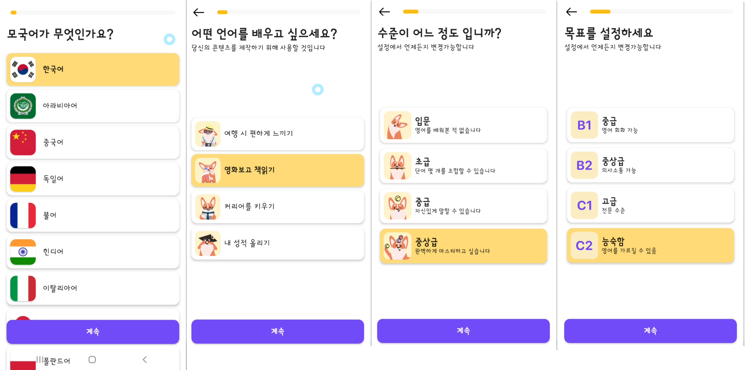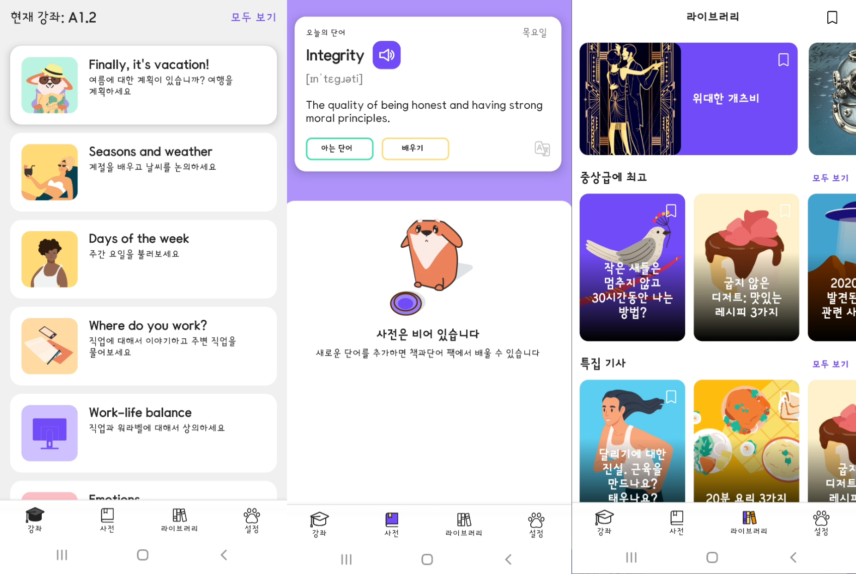 이런 부분은 Usability Test를 통해 사용자들의 행동을 보고 개선해야 할 부분을 찾아봐야 할 것이다. 영어학습 앱이기 때문에 특히 학습에서 경험하는 것에 집중하여 UX를 개선해야 할 것이다.