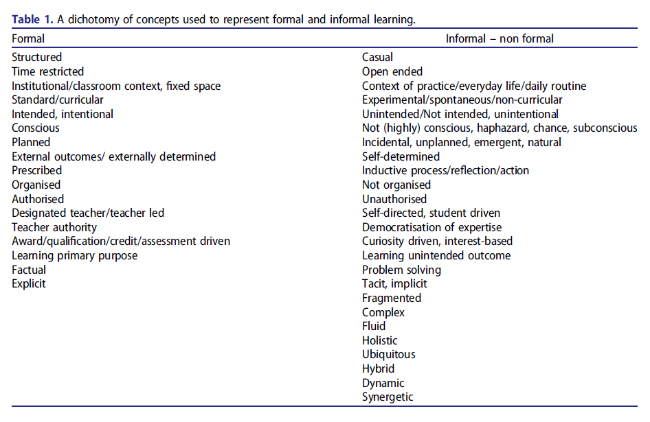 Formal-Informal learning - constructed dichotomy