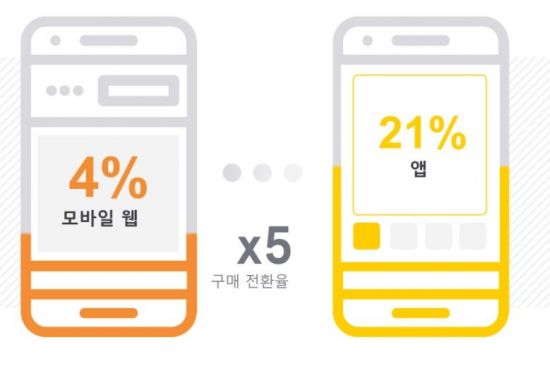 모바일 앱, 실제 구매로 이어질 확률 높아 온라인 쇼핑시장에서 모바일이 데스크탑을 무섭게 밀어내고 있다. 아시아태평양 지역에서는 전체 온라인쇼핑에서 모바일 기반 거래가 차지하는 비중