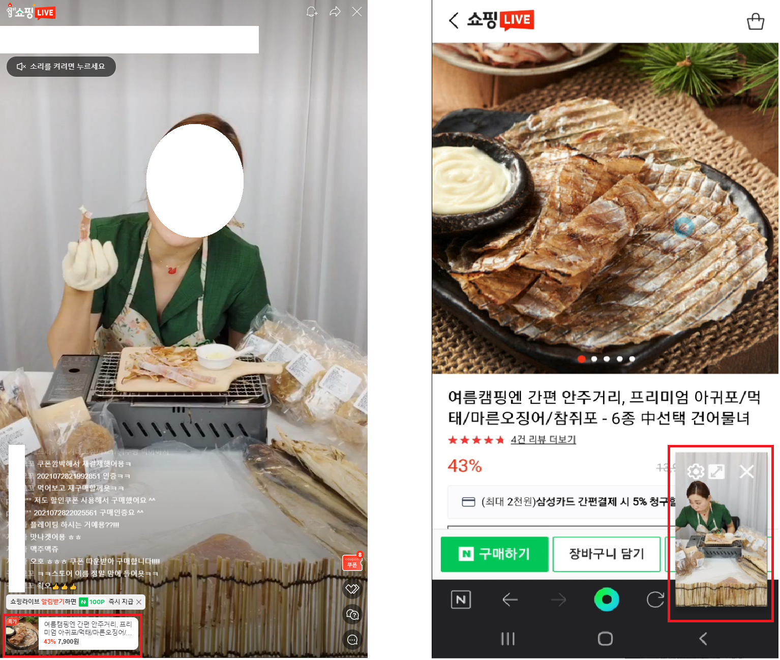 | 쇼핑 라이브에서 원클릭 구매 기능 |