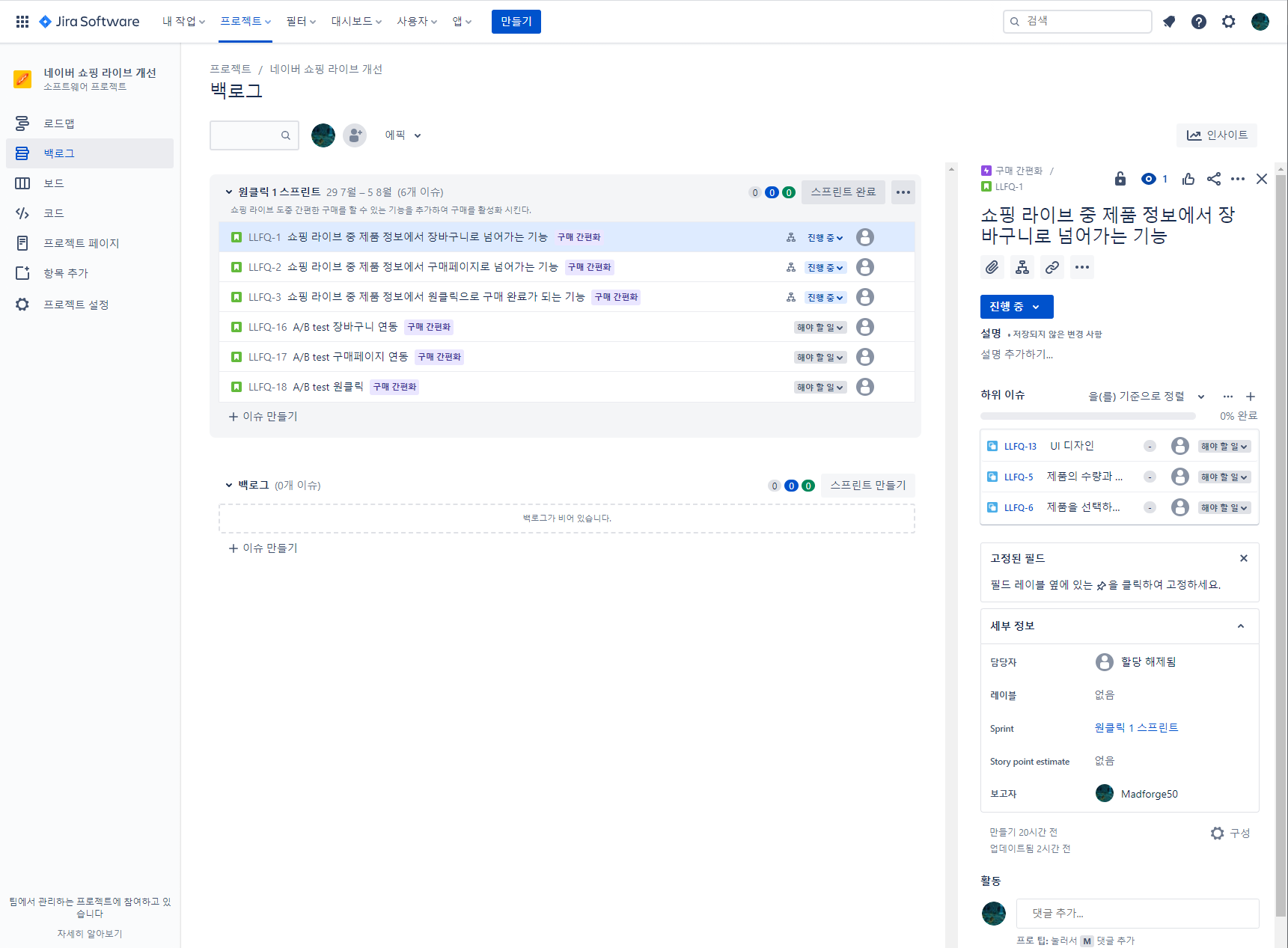 다음은 Jira에서 스프린트를 계획해 보았다.